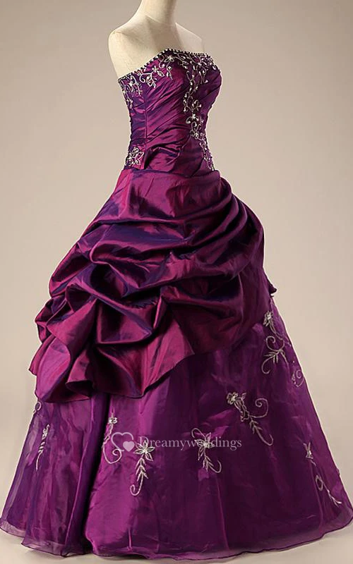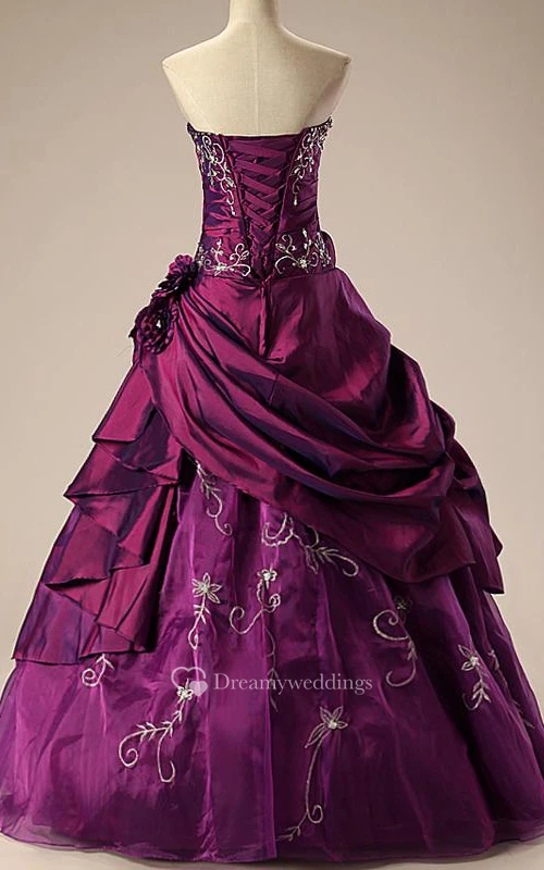 Ball Gown Long Straps Pleats Beading Embroidery Ruffles Lace-Up Back Straps Lace Organza Satin Dress
