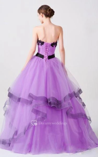 Ball Gown Long Straps Sleeveless Bell Appliques Ribbon Lace-Up Back Straps Tulle Lace Organza Dress