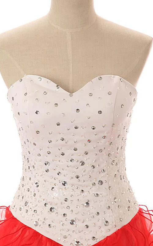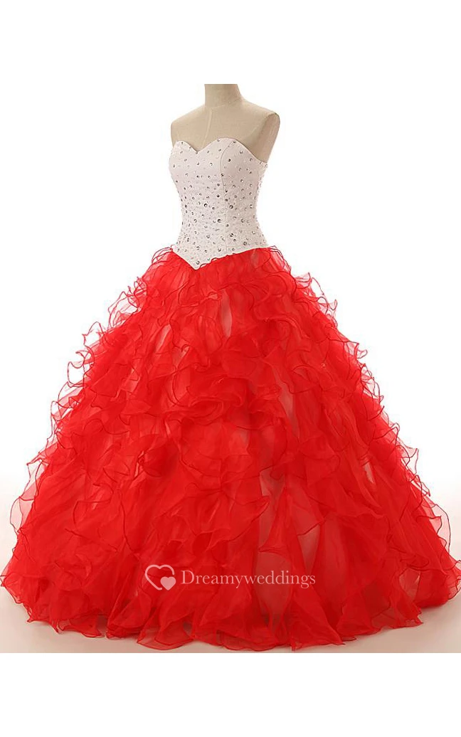 Ball Gown Long Sweetheart Beading Lace-Up Back Lace Sequins Organza Satin Dress