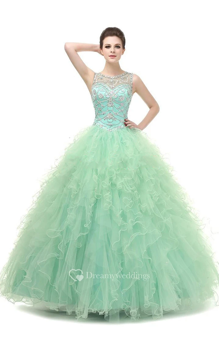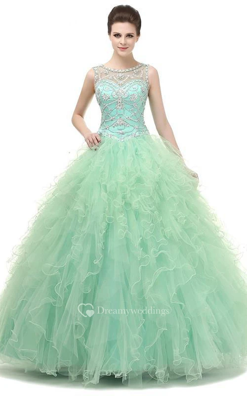 Ball Gown Maxi Beading Tulle Sequins Dress