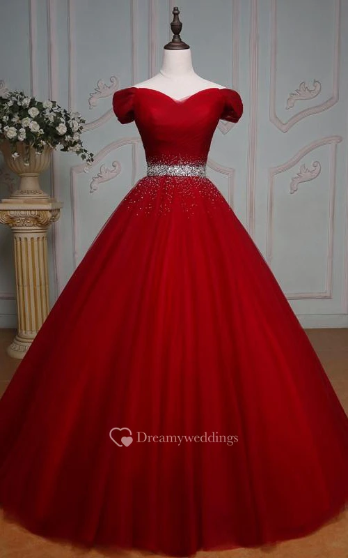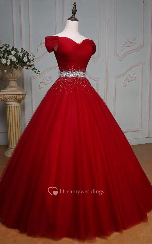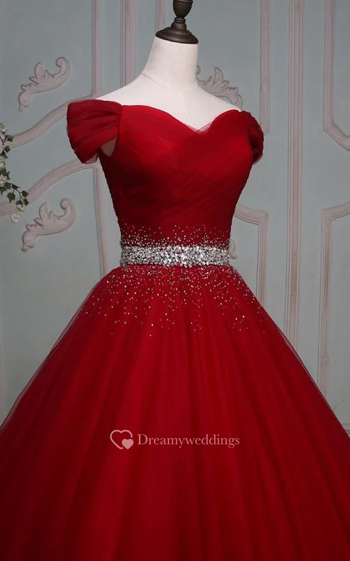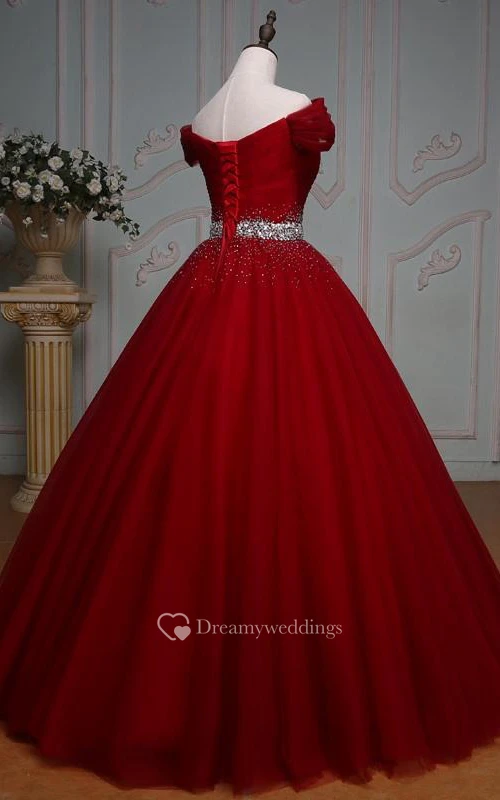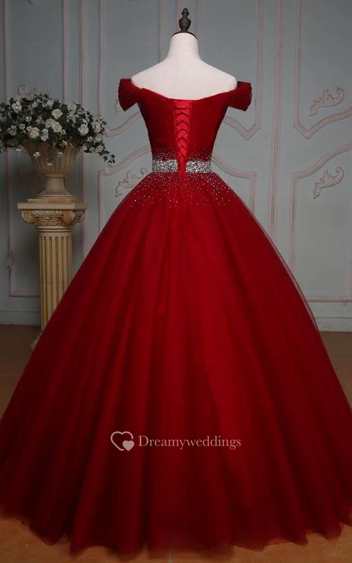 Ball Gown Maxi Off-The-Shoulder Sleeveless Bell Pleats Beading Corset Back Tulle Lace Dress