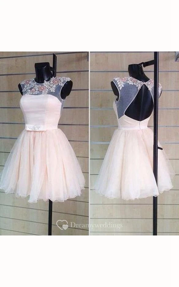 Ball Gown Mini Sweetheart Appliques Jacket Keyhole Tulle Lace Dress