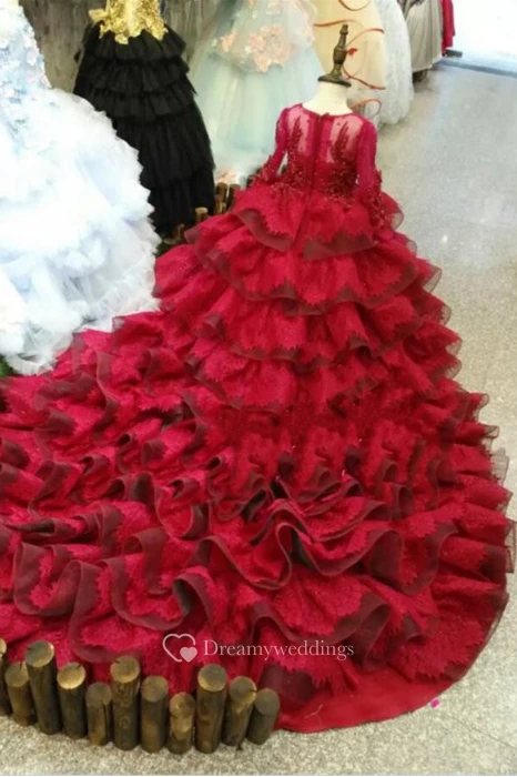 Ball Gown Scoop Long Sleeve Flower Girl Dress with Ruffle and Beading