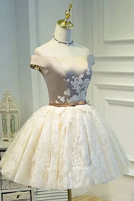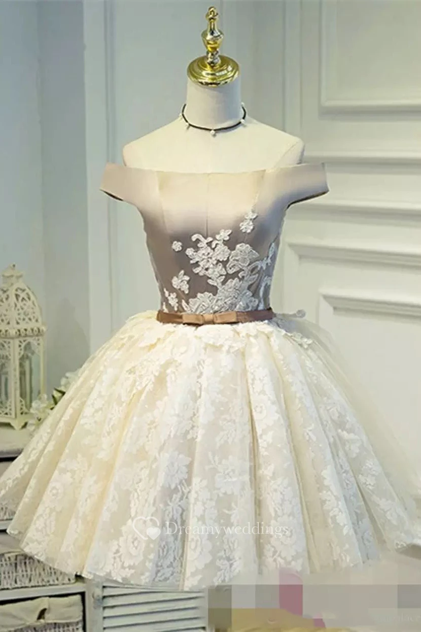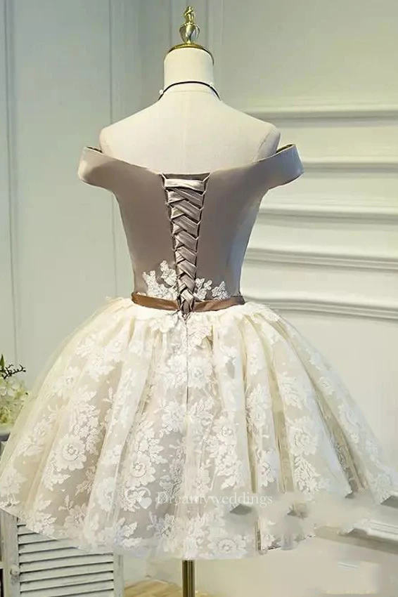 Ball Gown Sleeveless Satin Lace Off-the-shoulder Lace-up Short Mini Homecoming Dress