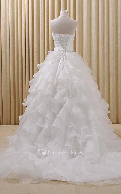 Ball Gown Sweetheart Bell Beading Appliques Sash Ruffles Backless Zipper Lace-Up Back Chiffon Lace Sequins Organza Satin Taffeta Dress
