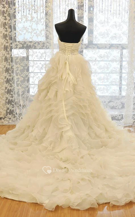 Ball Gown Tea-Length Off-The-Shoulder One-Shoulder Sweetheart Beading Ruffles Chapel Train Zipper Corset Back Chiffon Lace Sequins Organza Satin Dress