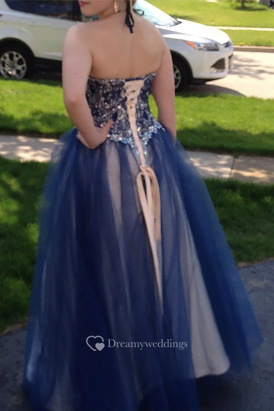 Ball Gown Tulle Halter Sleeveless Lace-up Corset Back Dress