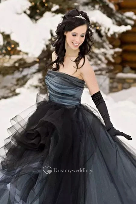 Ball Gown Tulle Strapless Sleeveless Floor-length Sweep Train Wedding Dress with Tiers