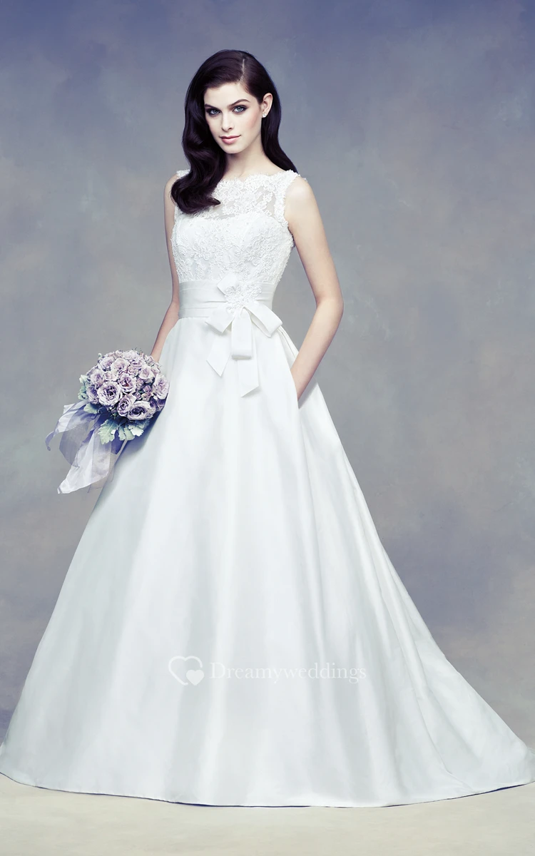 Bateau A-Line Exquisite Dress With V Back And Bow Sash