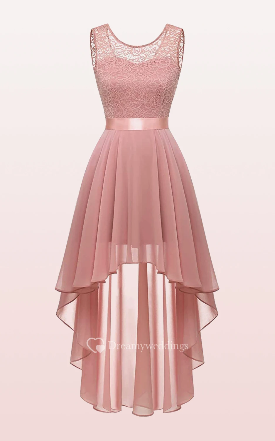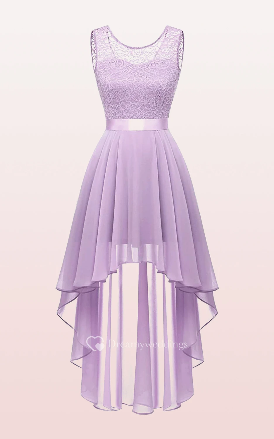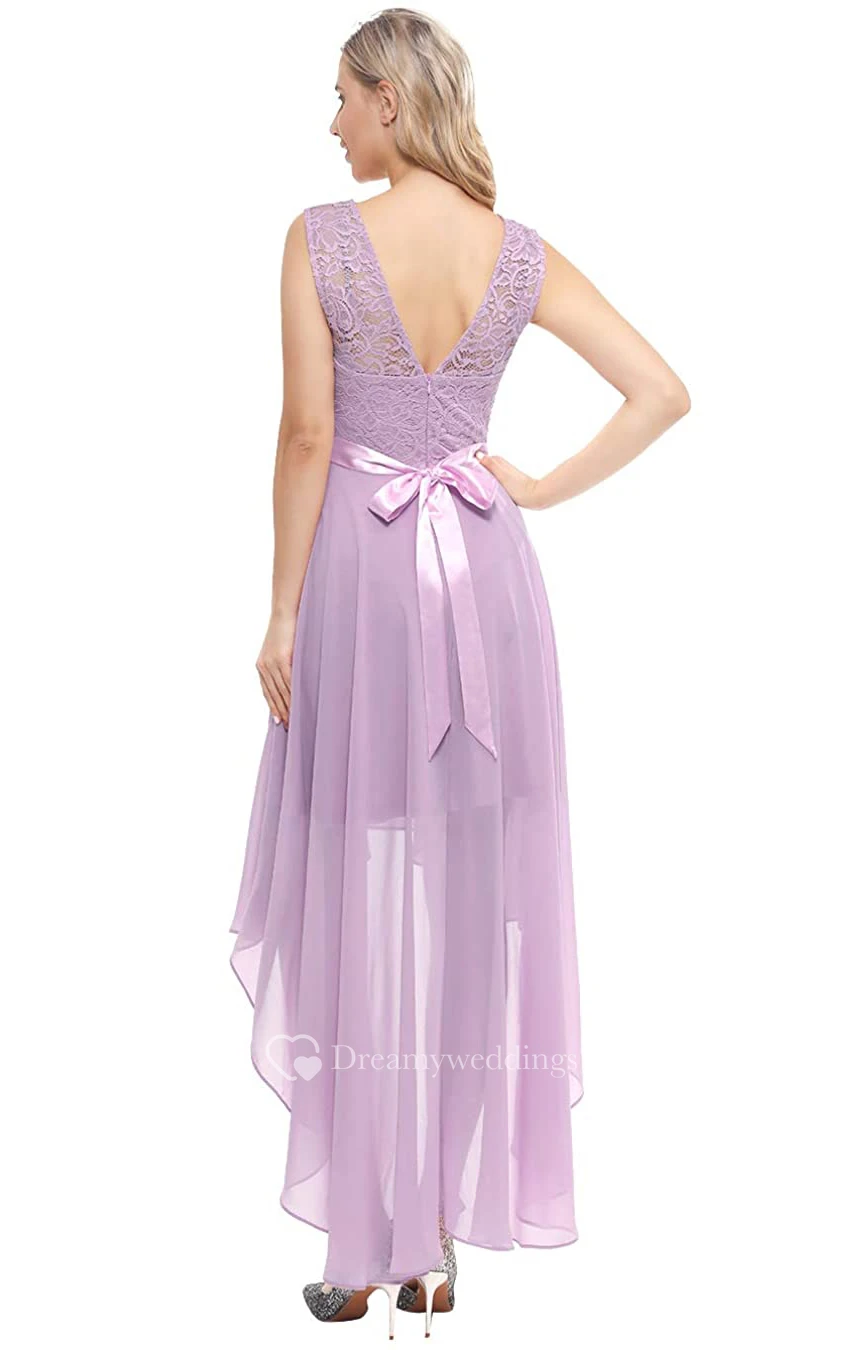 Bateau A Line Sleeveless High-Low Chiffon Bridesmaid Dress With Sash/Ribbon