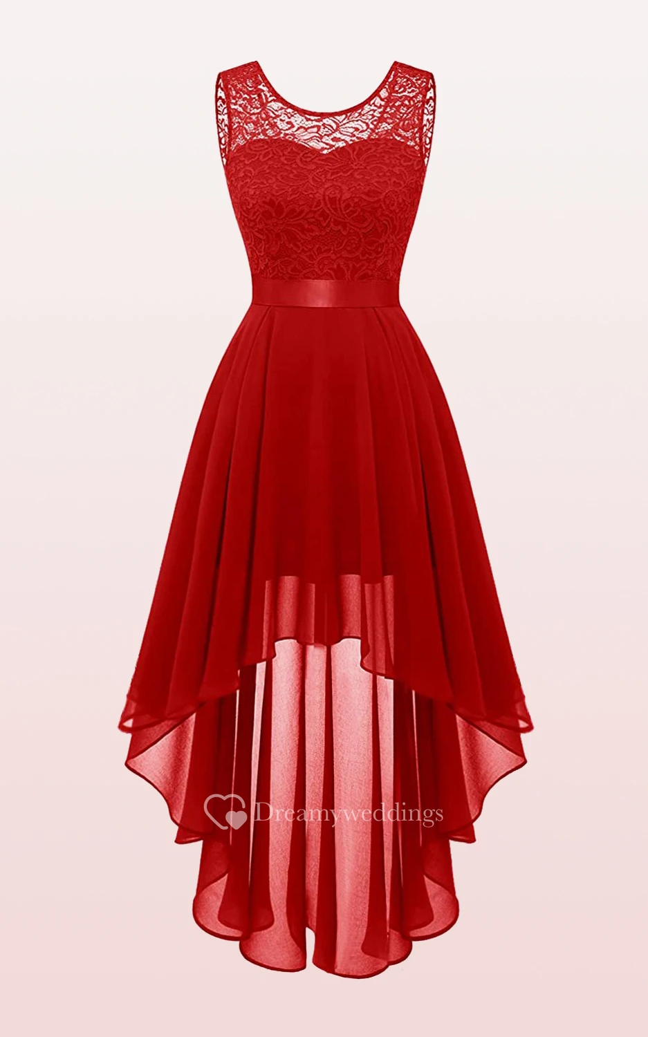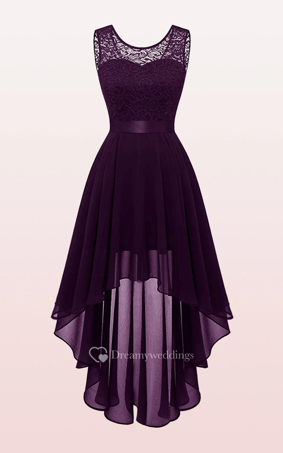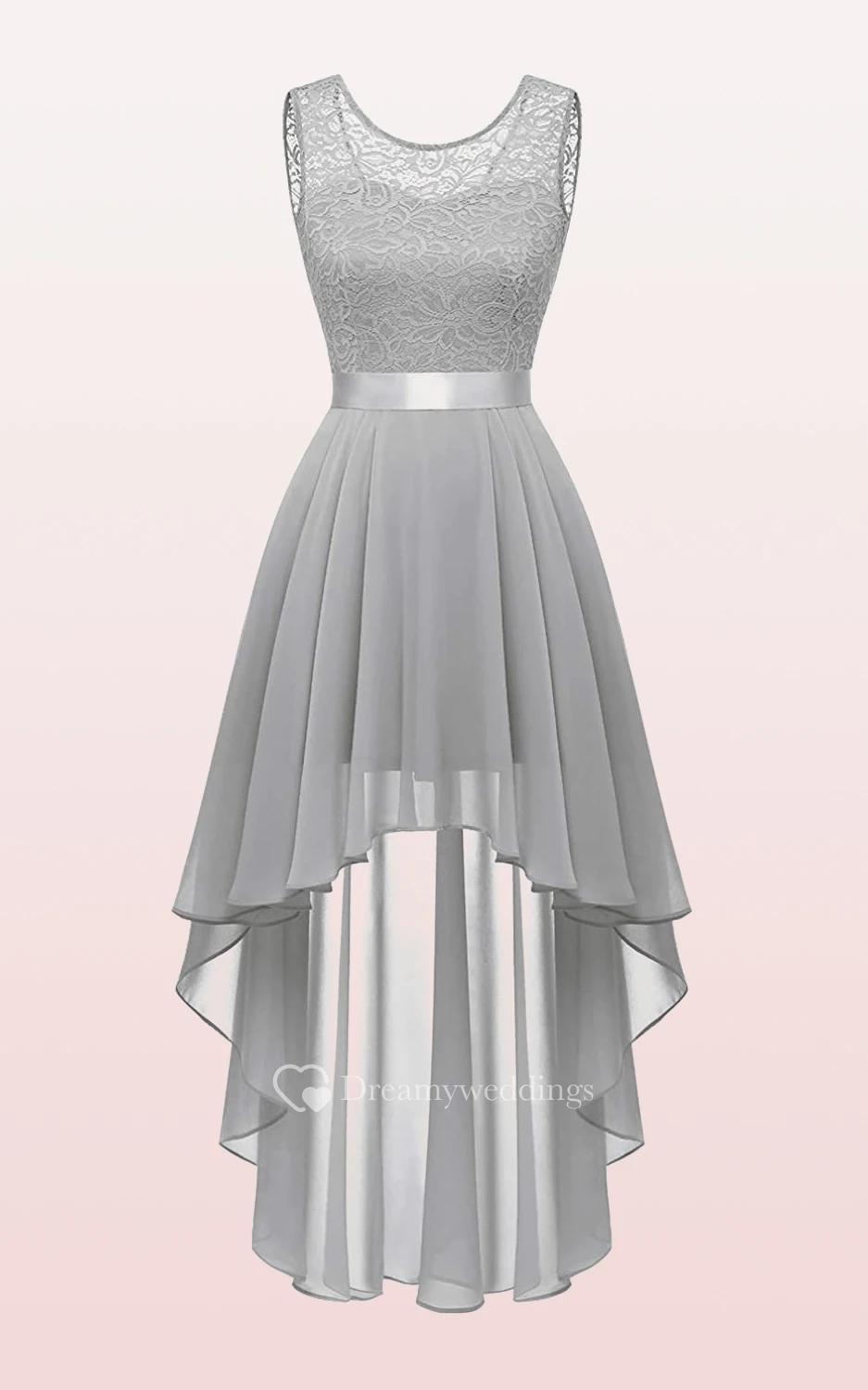 Bateau A Line Sleeveless High-Low Chiffon Bridesmaid Dress With Sash/Ribbon