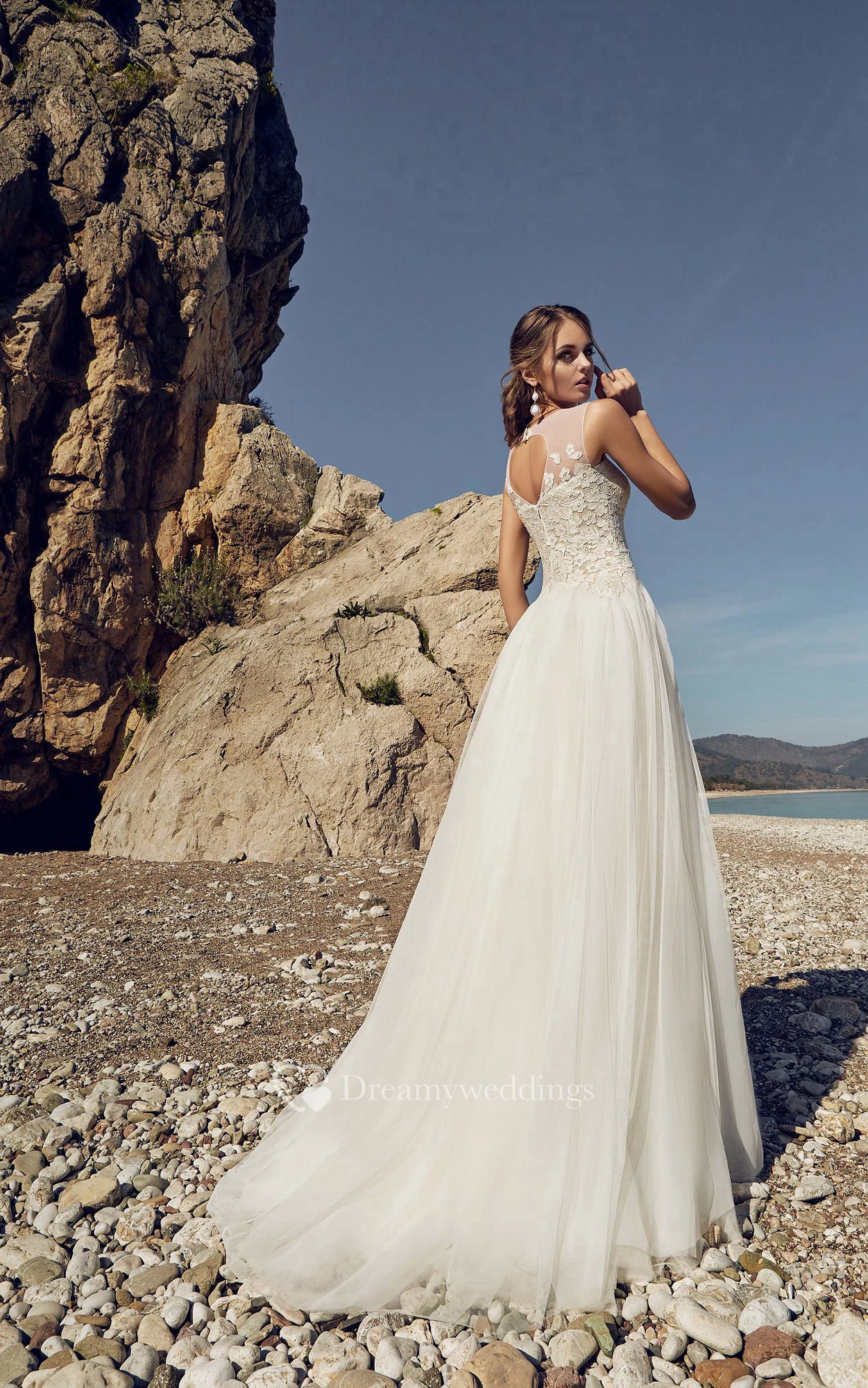 Bateau Lace Appliques Empire Tulle Floor-length Keyhole Back Dress
