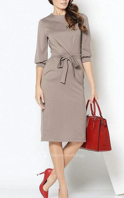 Bateau Neck 3-4 Puff Sleeve Sheath Jersey Short Dress With Sash