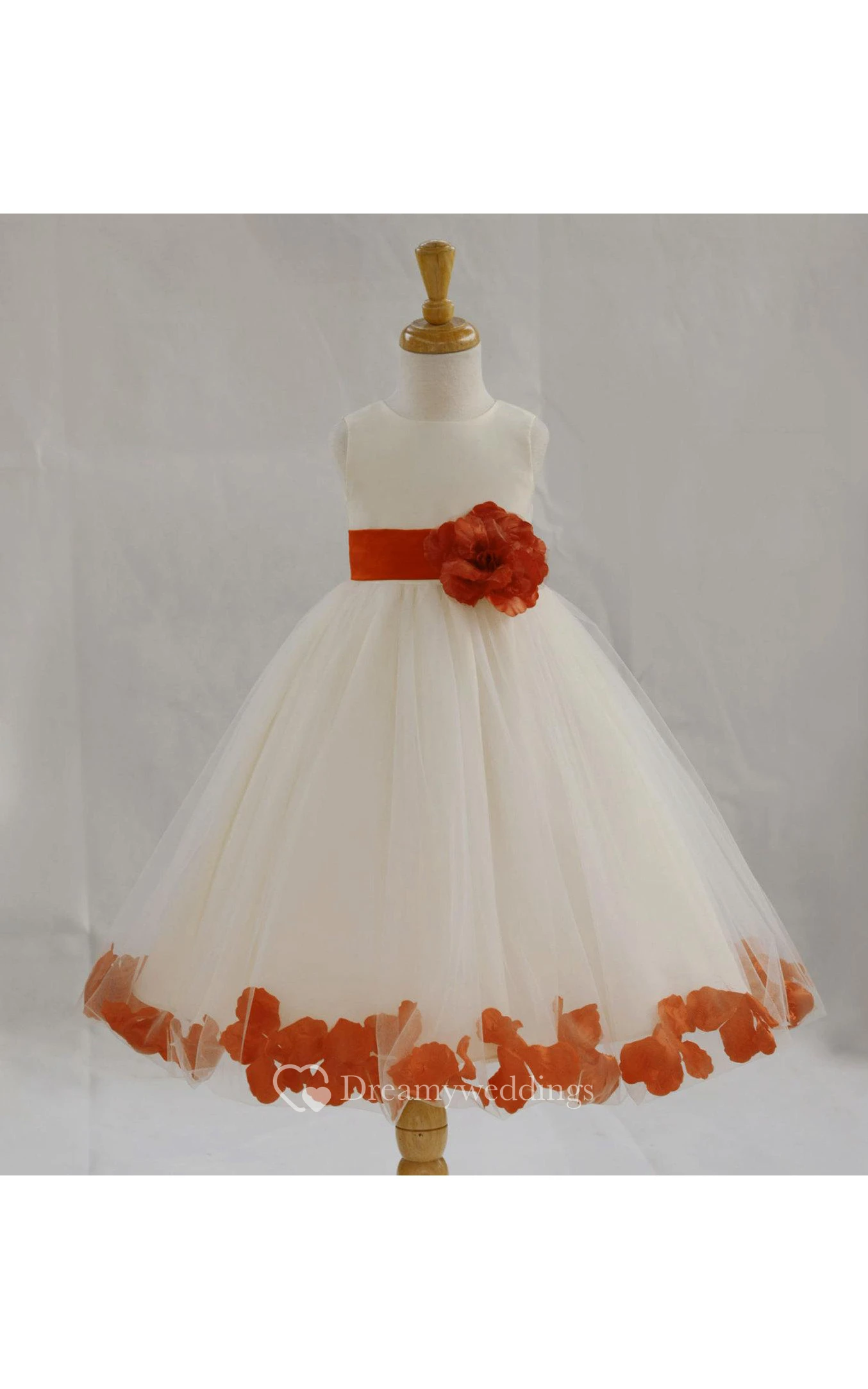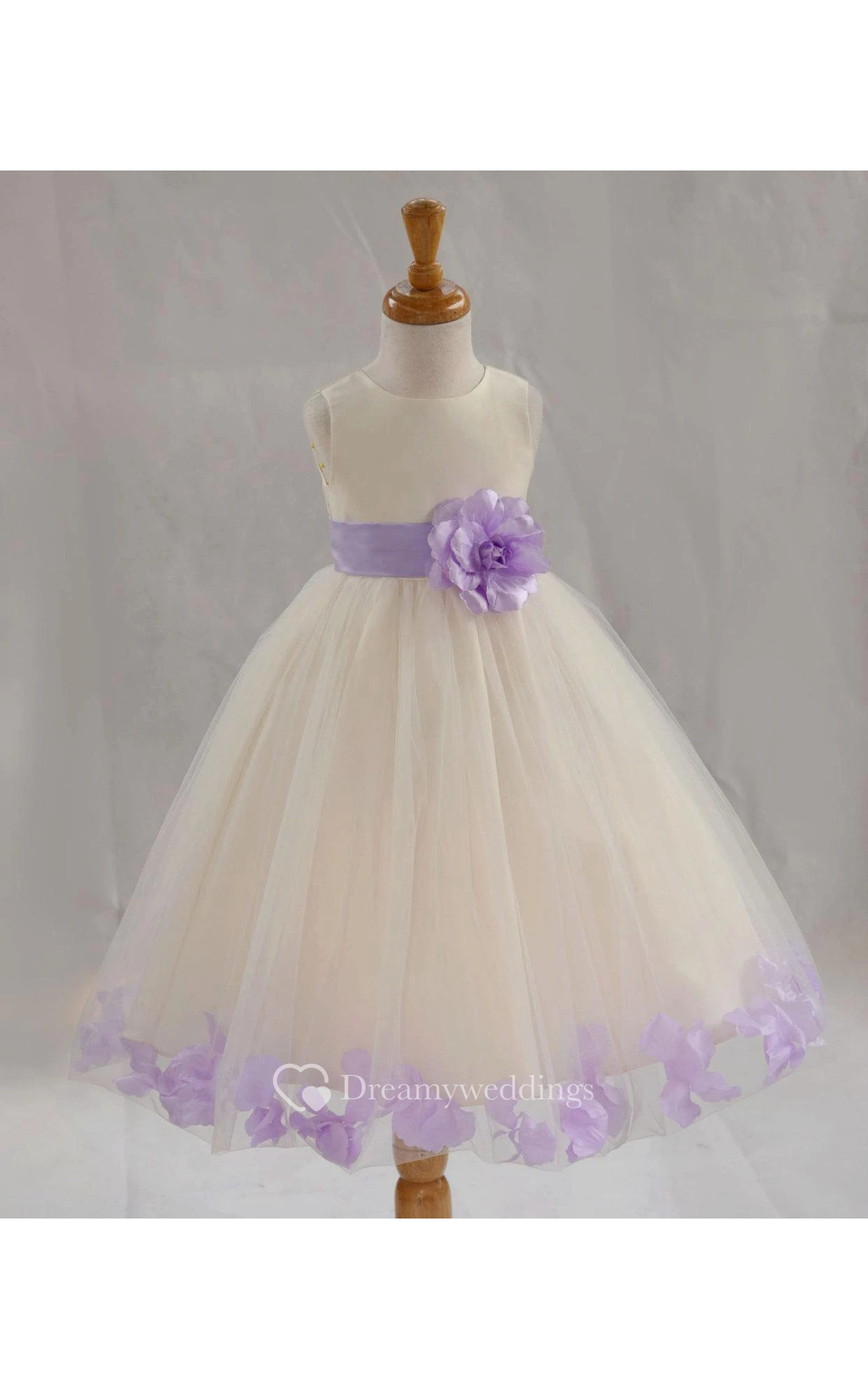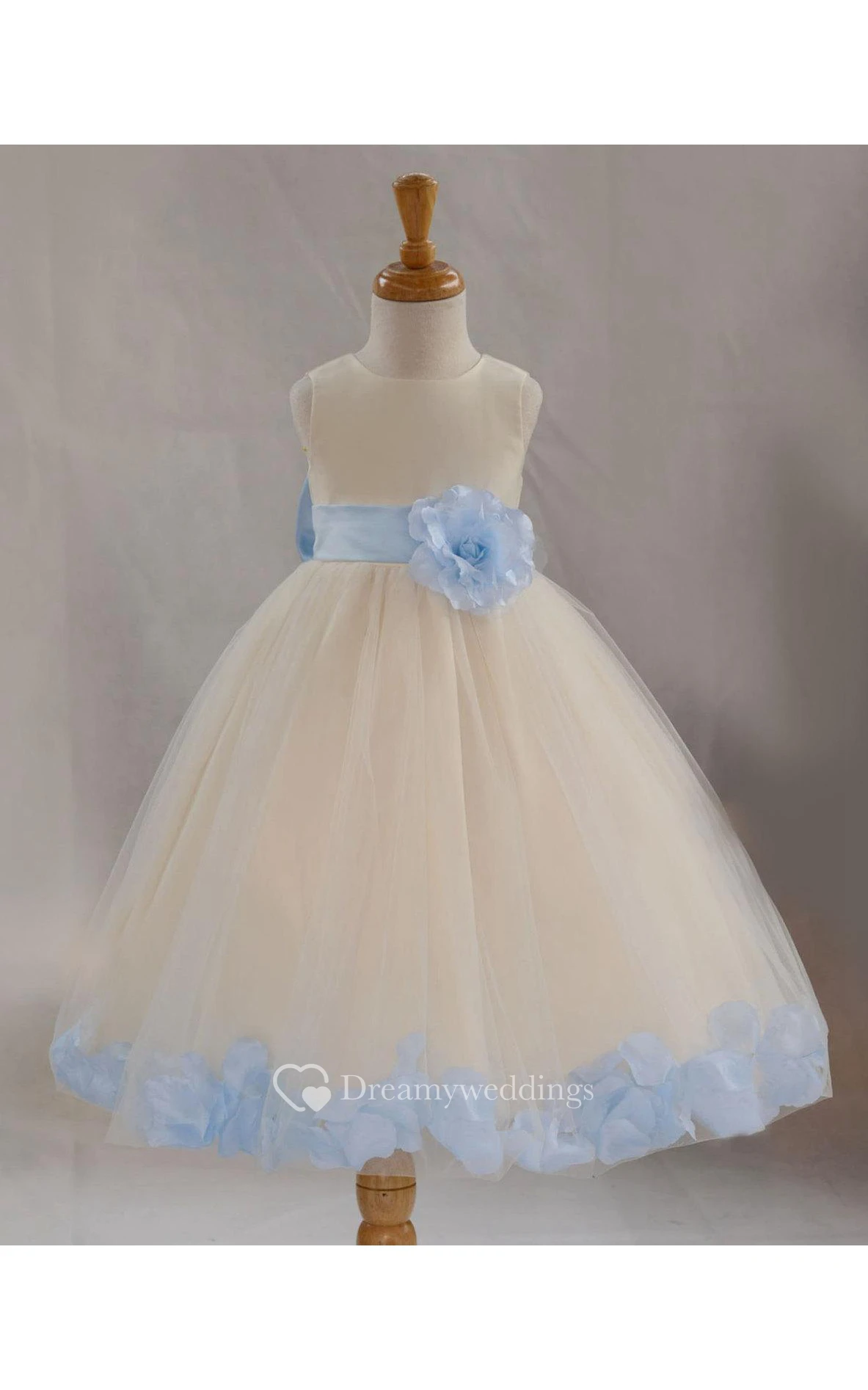 Bateau Neck Empire Tulle Ball Gown With Flower Sash and Pleats