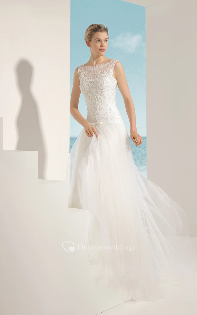 Bateau-Neck Lacy Bodice Backless Dress With Ruffles