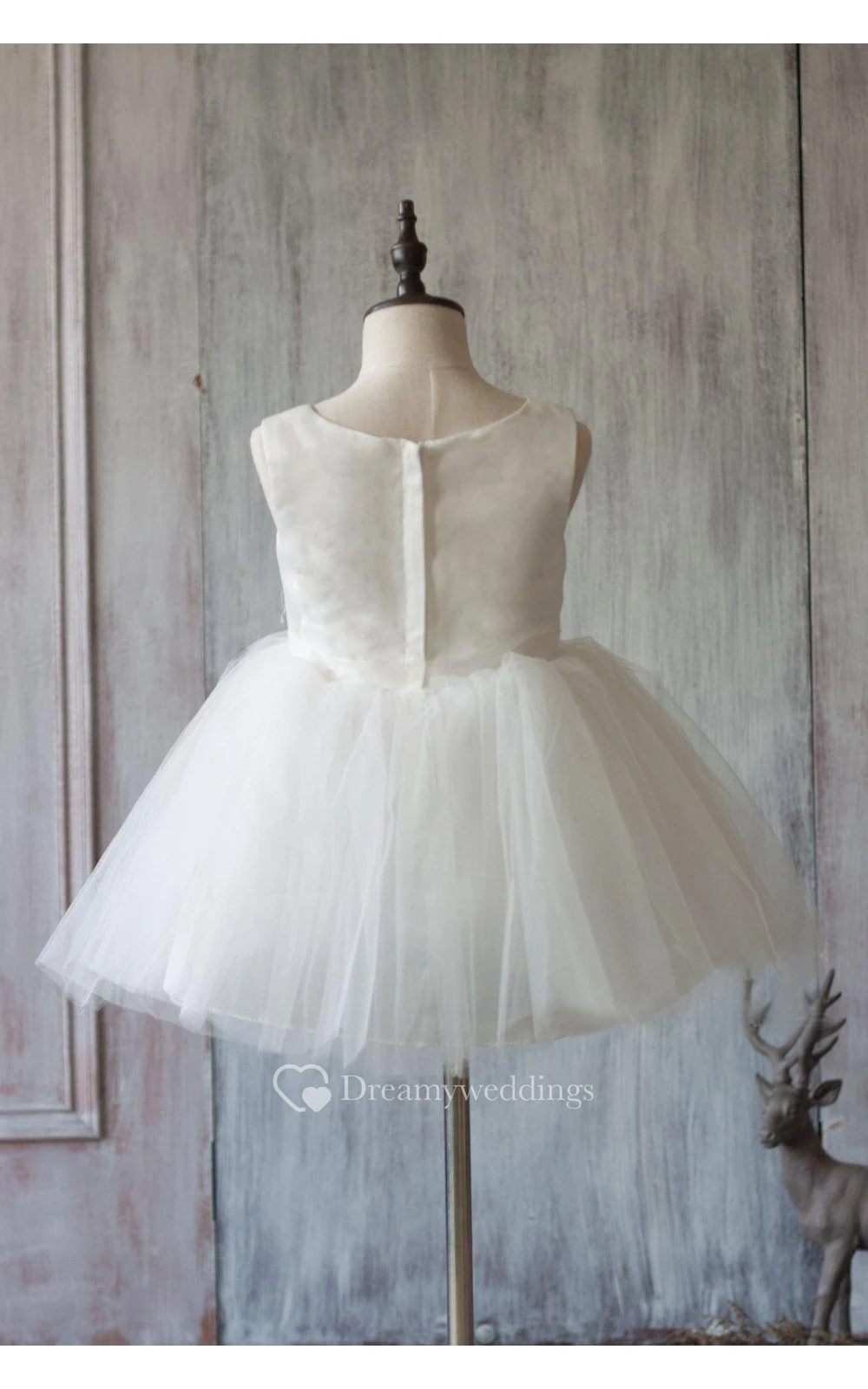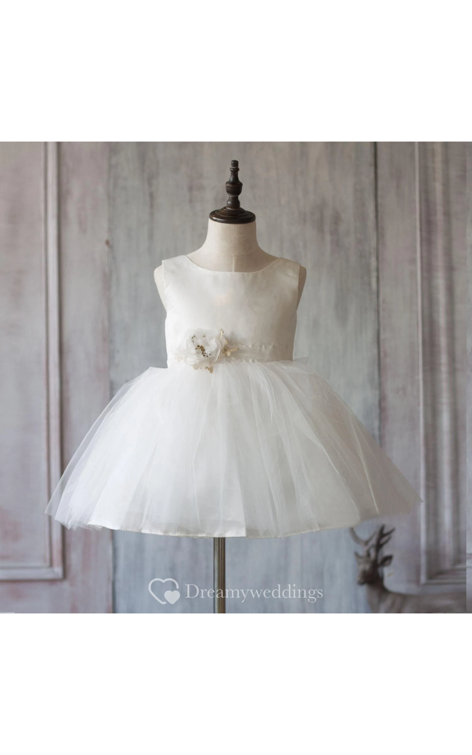 Bateau Neck Sleeveless Knee Length A-line Tulle Dress With Waist Flower