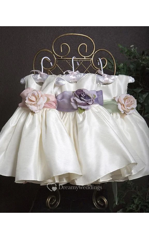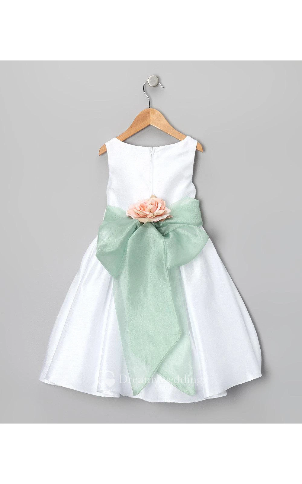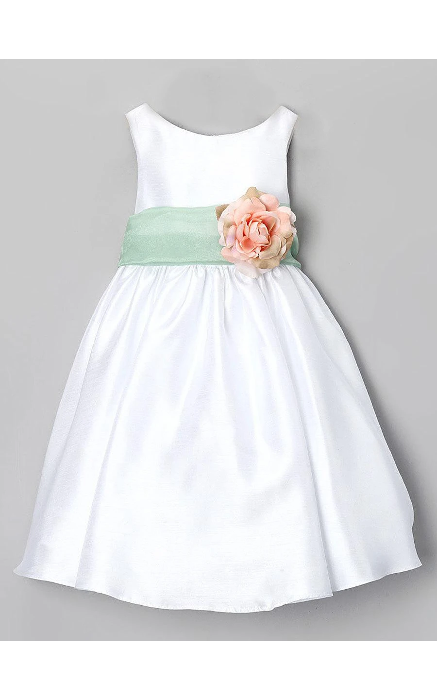 Bateau Neckline Sleeveless A-line Satin Long Dress With Flower