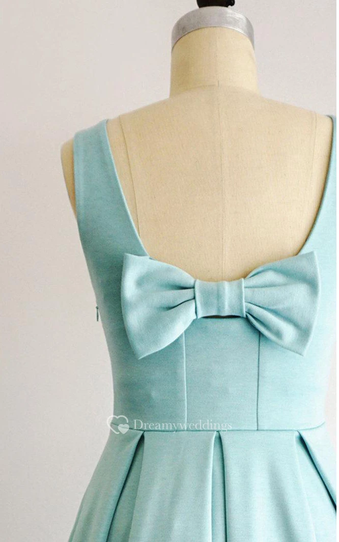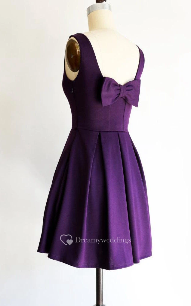 Bateau Sleeveless A-line Pleated Jersey Knee Length Dress With Bow Purple