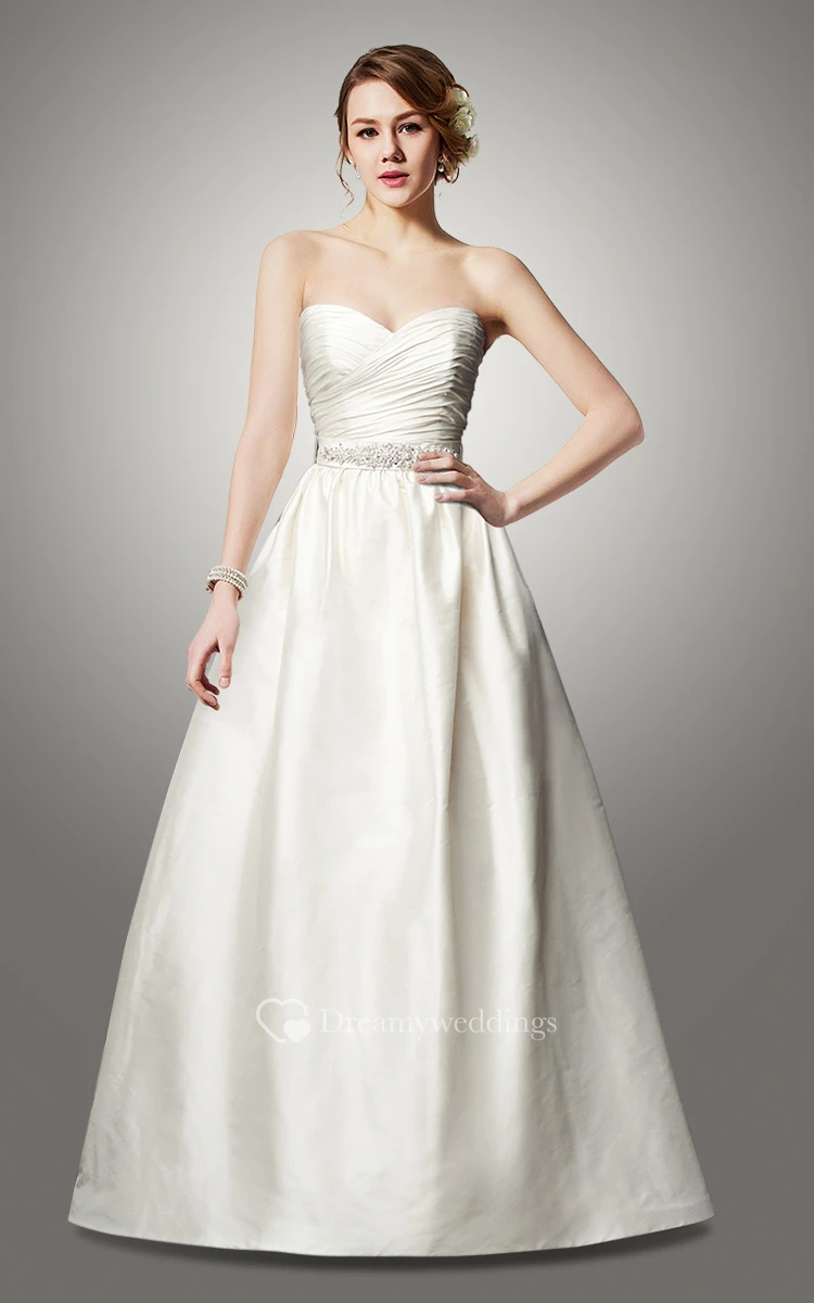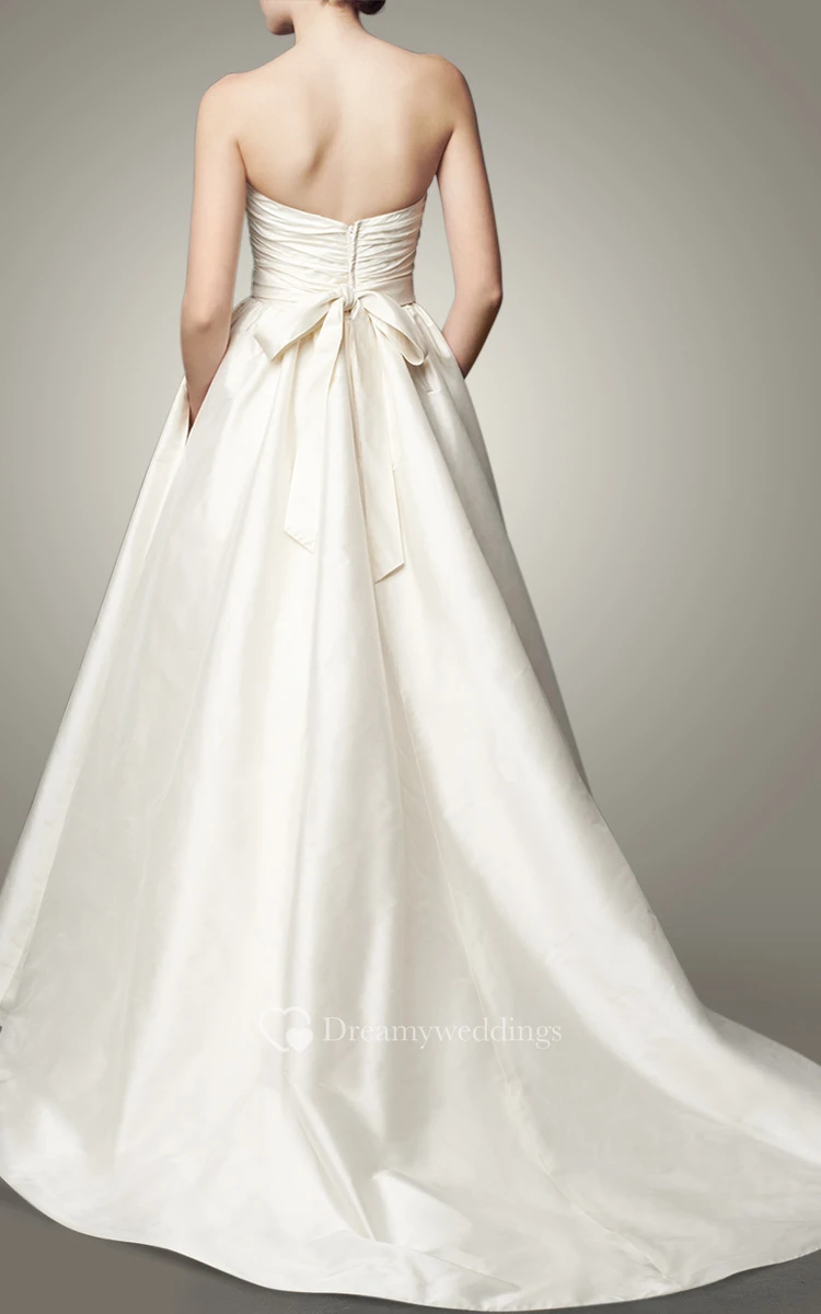 Beaded A-Line Sweetheart Taffeta Wedding Dress With Bow