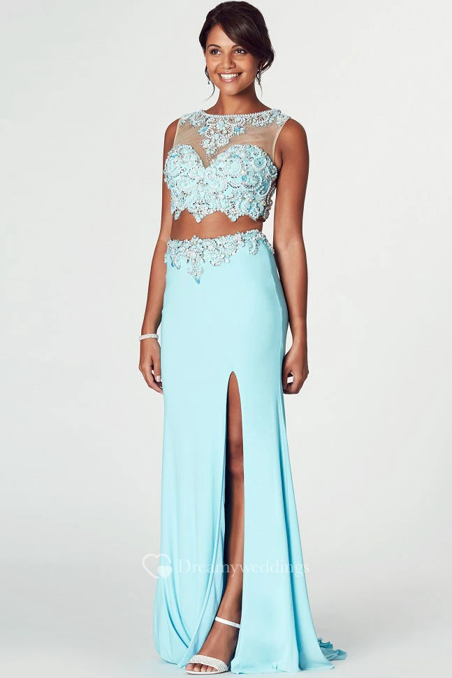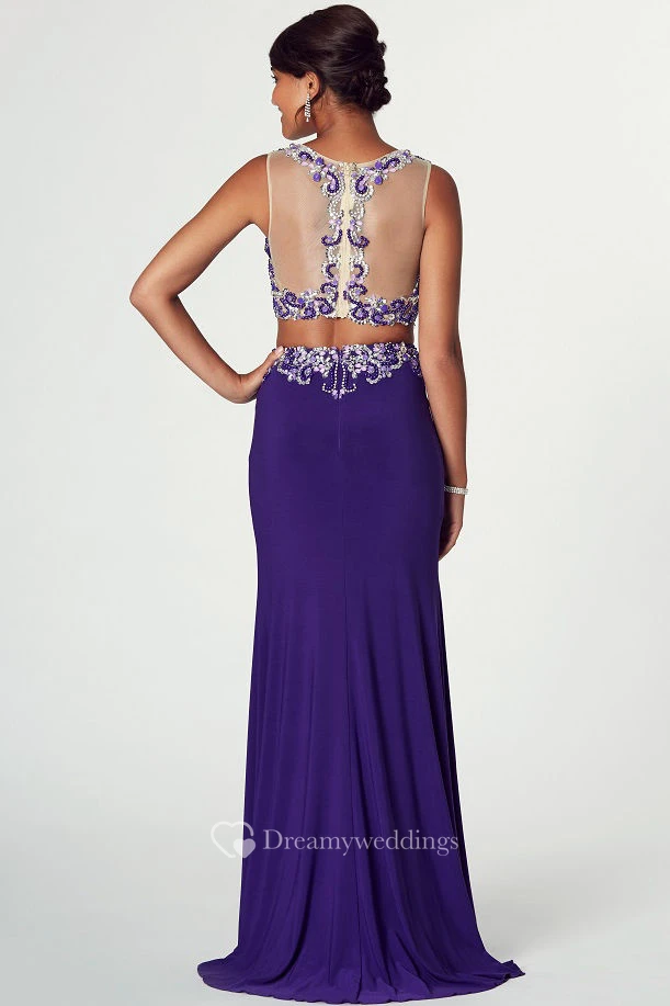 Beaded Bateau Neck Sleeveless Jersey Prom Dress