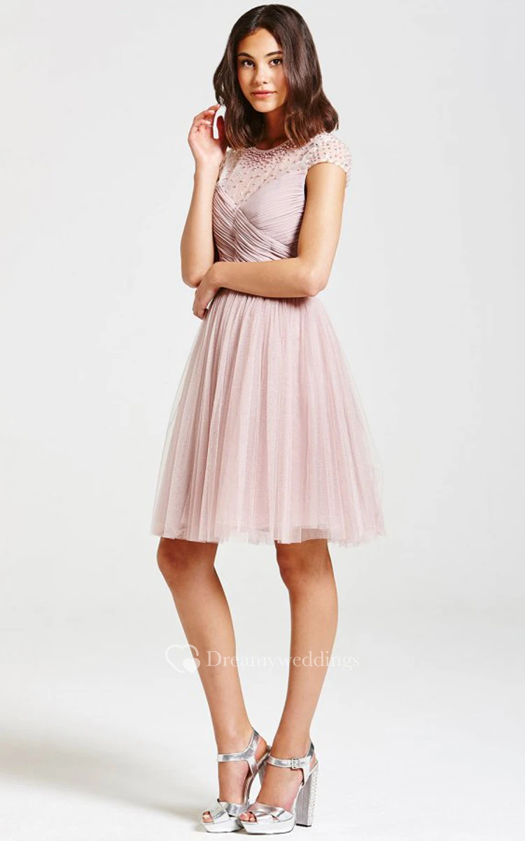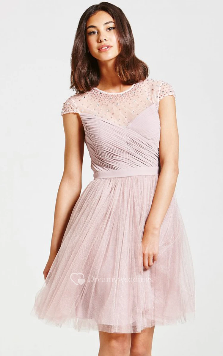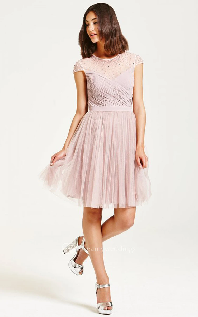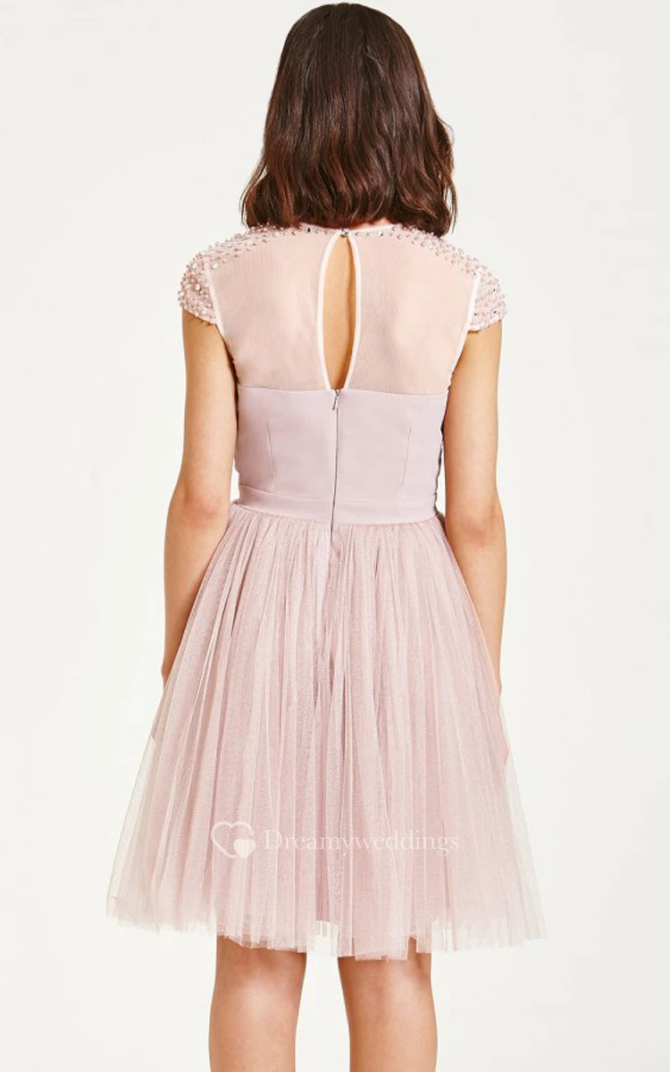 Beaded Illusion Neckline Dress With Back Keyhole