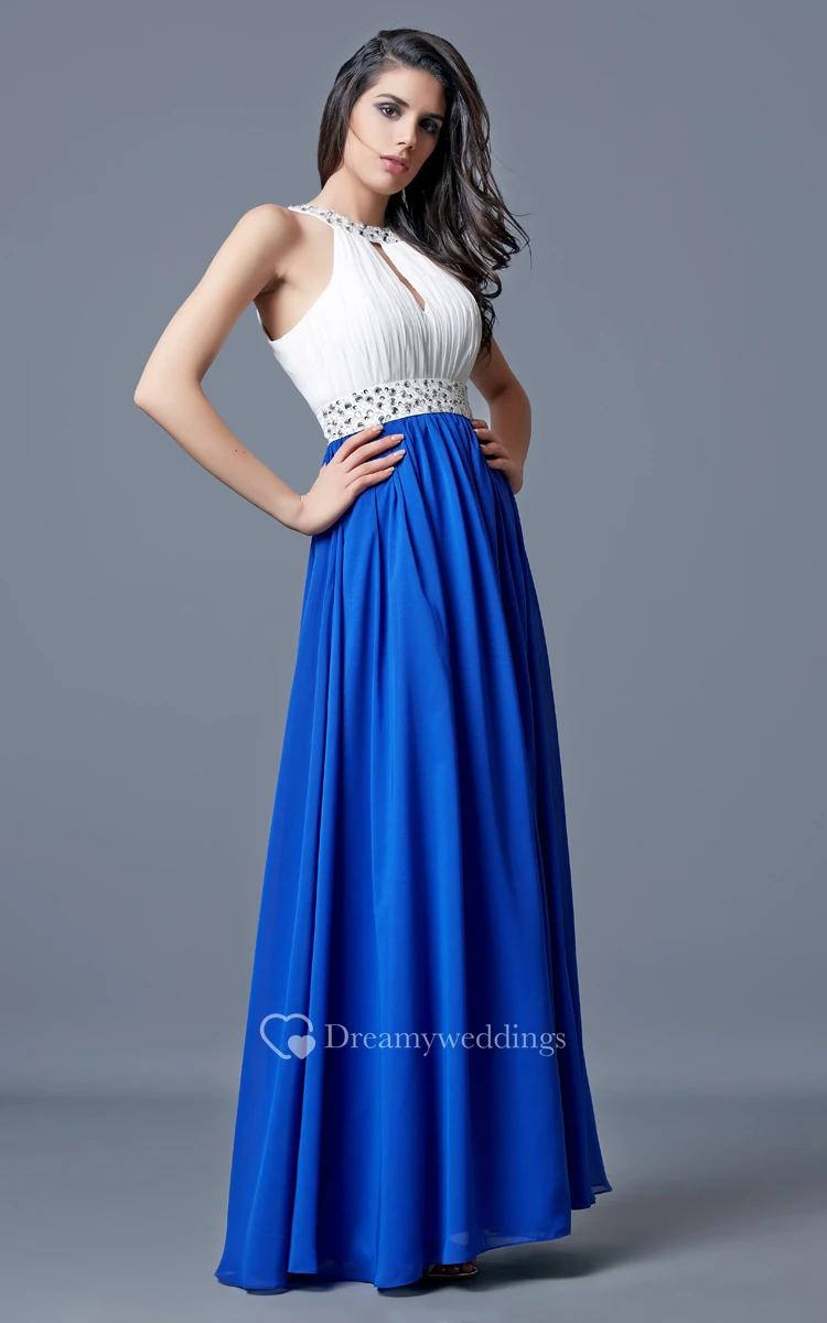 Beaded Neckline and Waist Long A-line Chiffon Dress