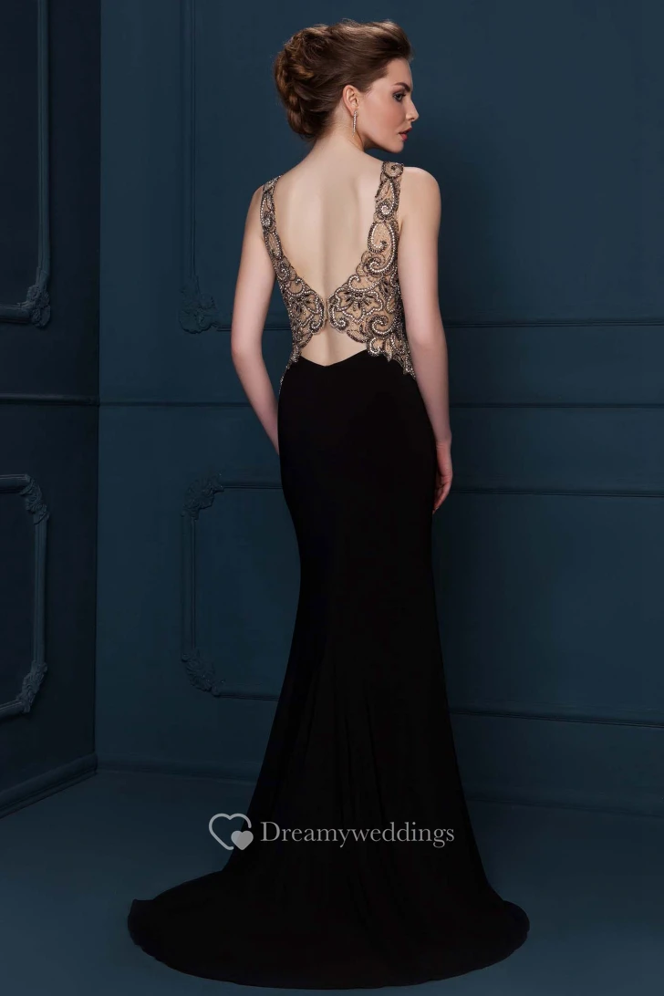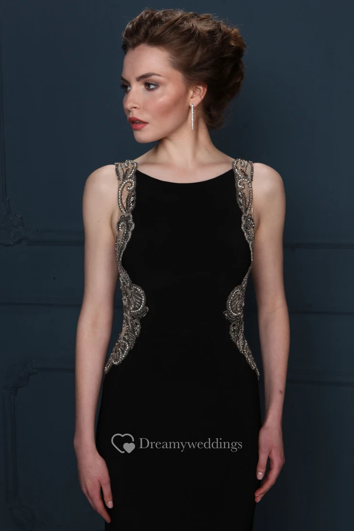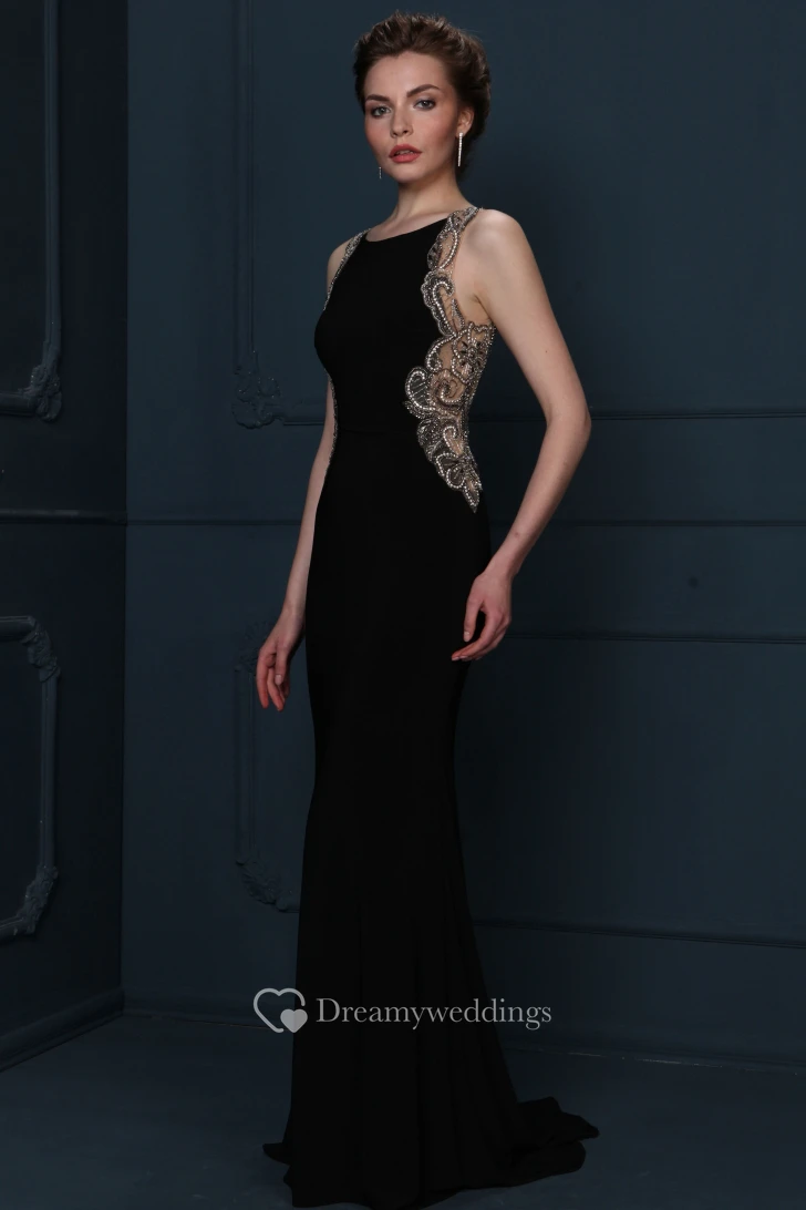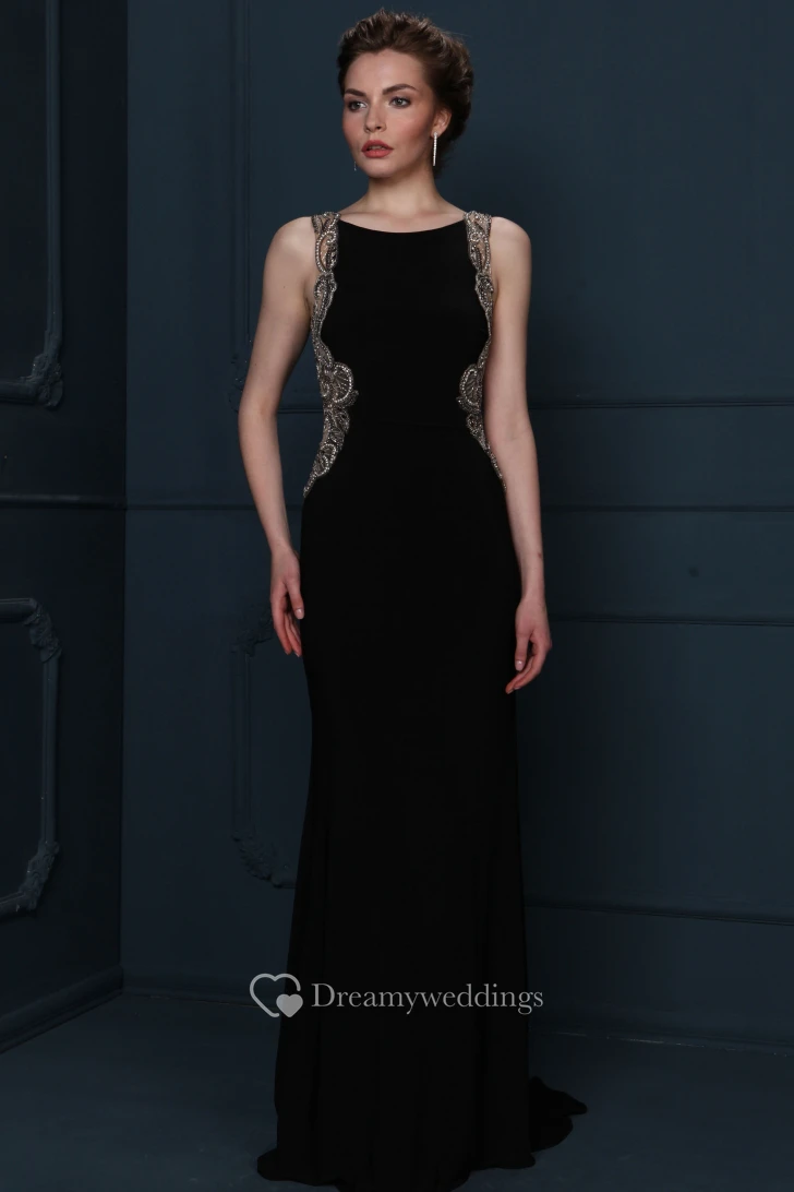 Beaded Sleeveless Scoop Neck Chiffon Evening Dress With Brush Train
