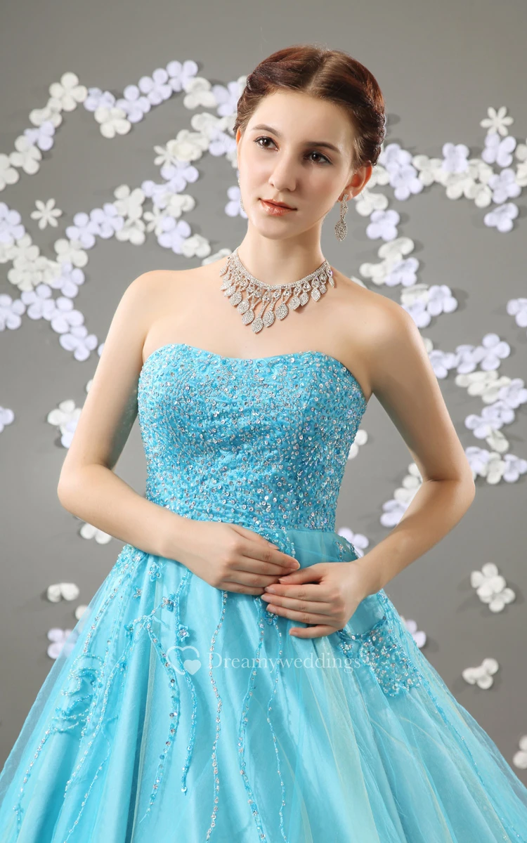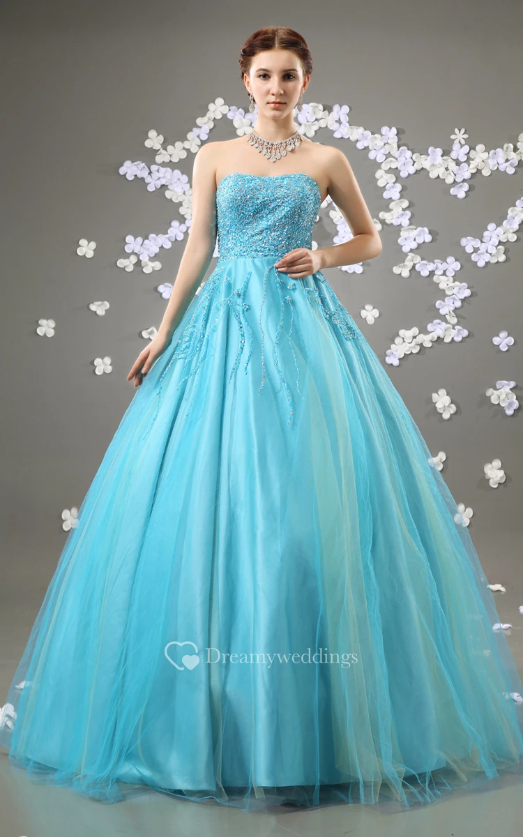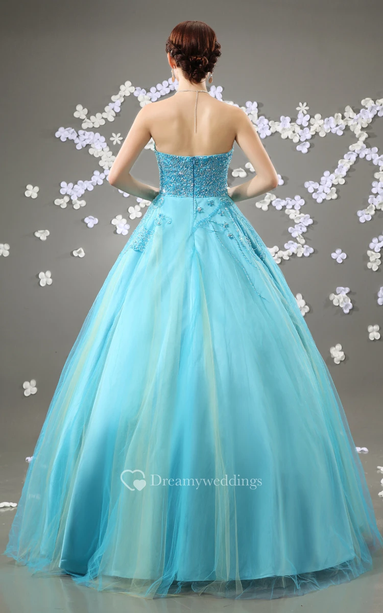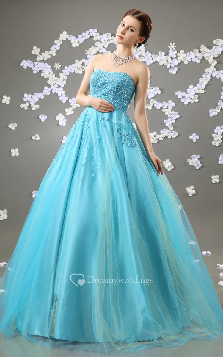 Beaded Top A-Line Quinceanera Ball Gown With Tulle Overlay