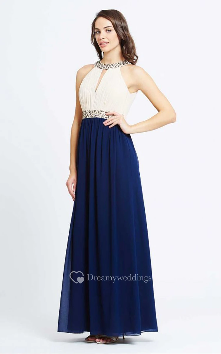 Beading-Neck A-Line Gown With Has Keyholes Beading Sash
