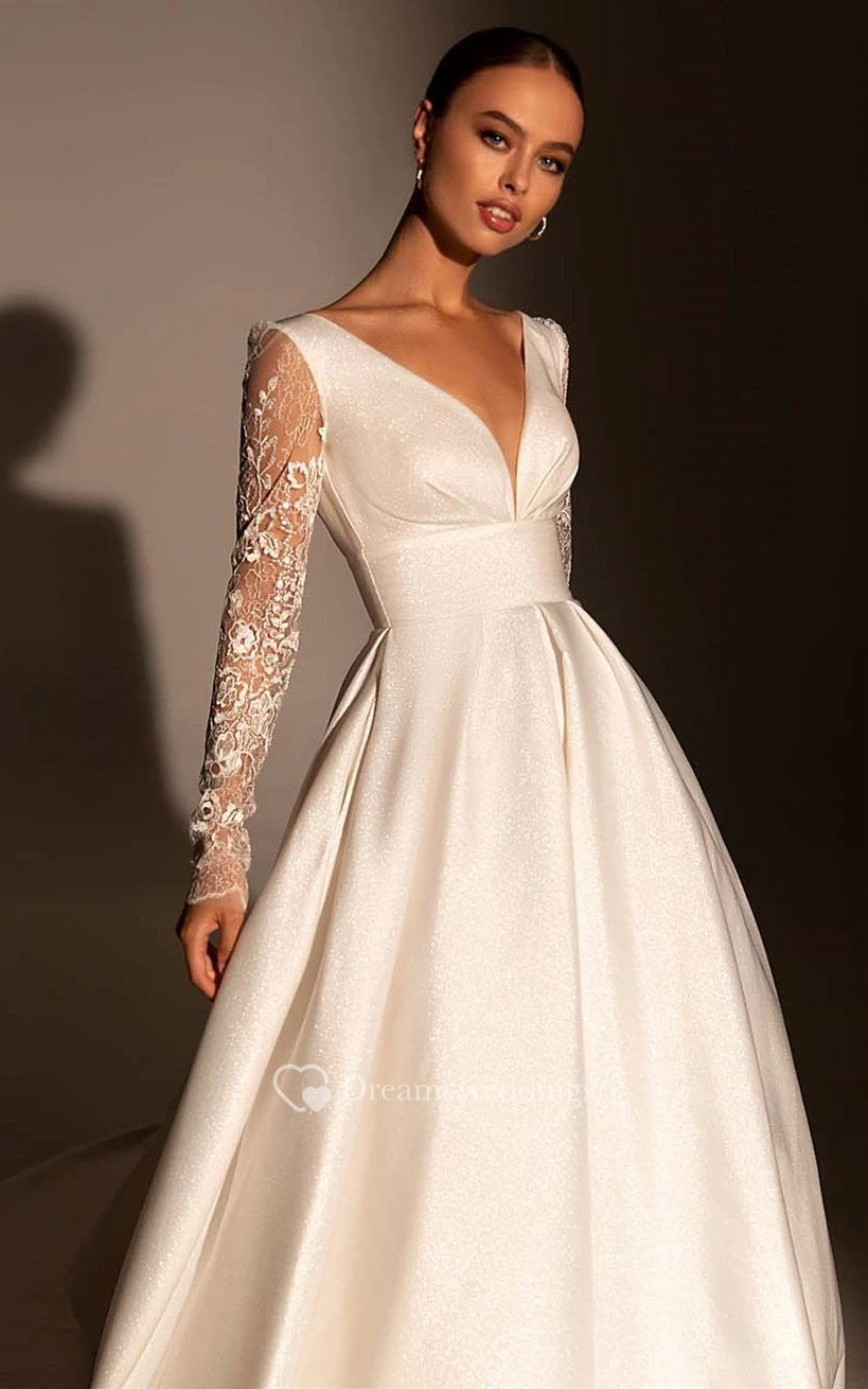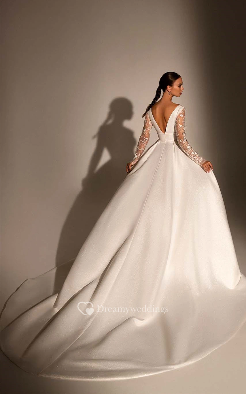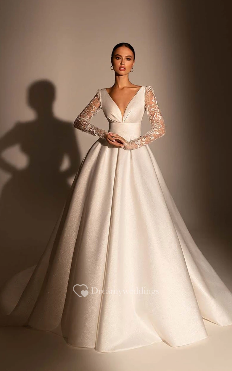 Beautiful Ball Gown Satin Bridal Dress with Ruching and Ribbon