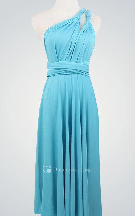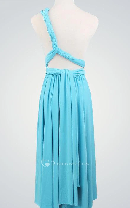 Blue Blue Short Short Wrap Knee Length Blue Infinity Short Bridesmaid Dress