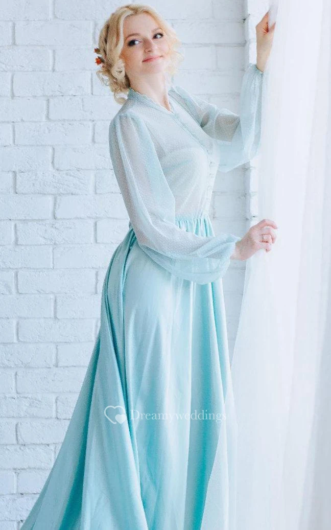 Blue Wedding Blue Witn Sleeves Blue Gown Wedding Gown Blue Sleeves Mint Mint Wedding Dress