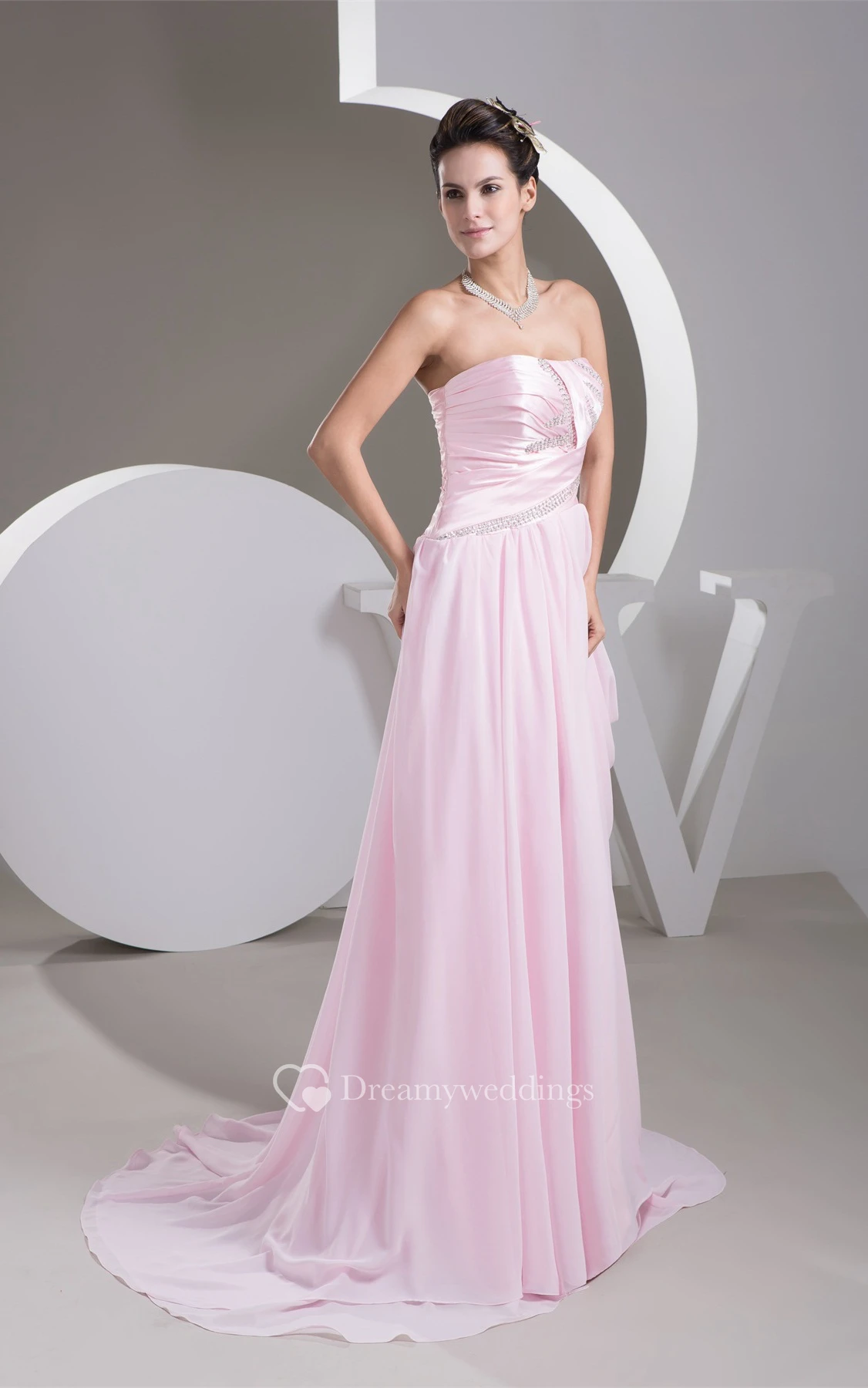 Blushing A-Line Maxi Chiffon Pleats and Dress With Beading