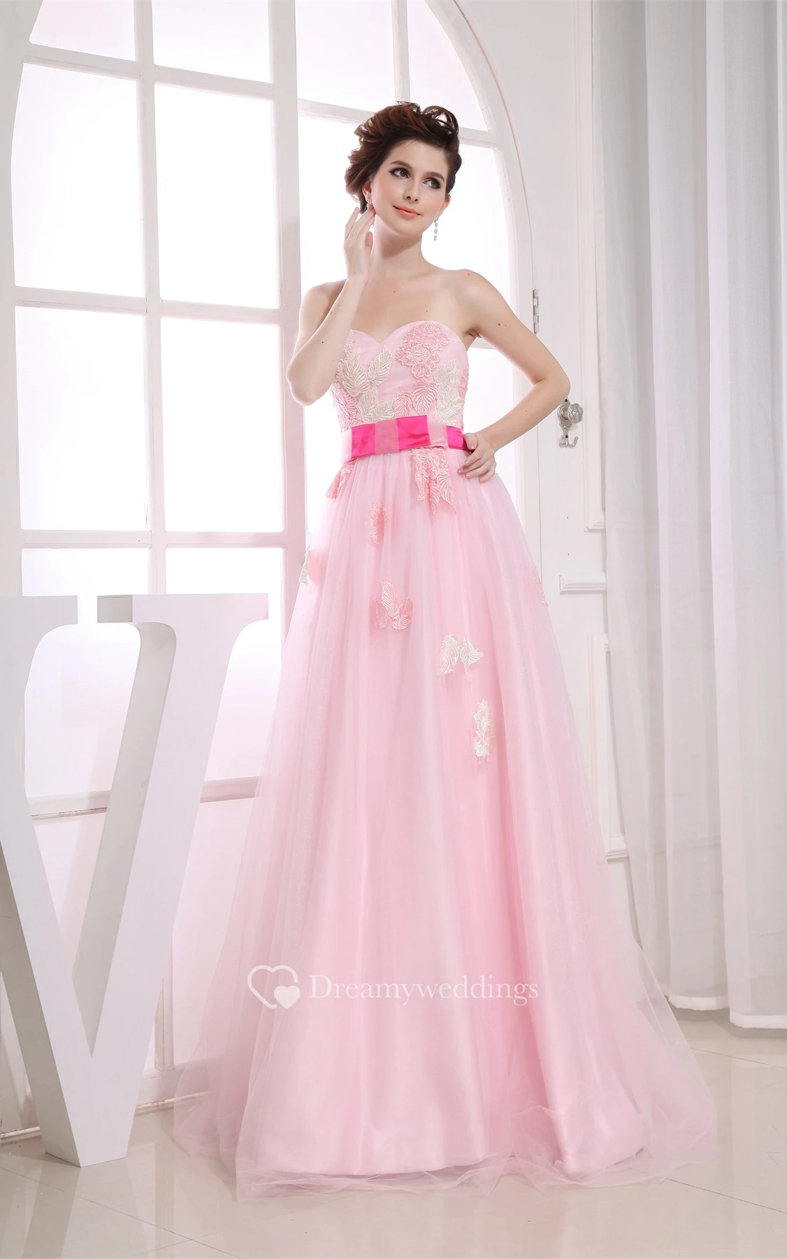 Blushing A-Line Sweetheart Tulle Overlay and Dress With Appliques
