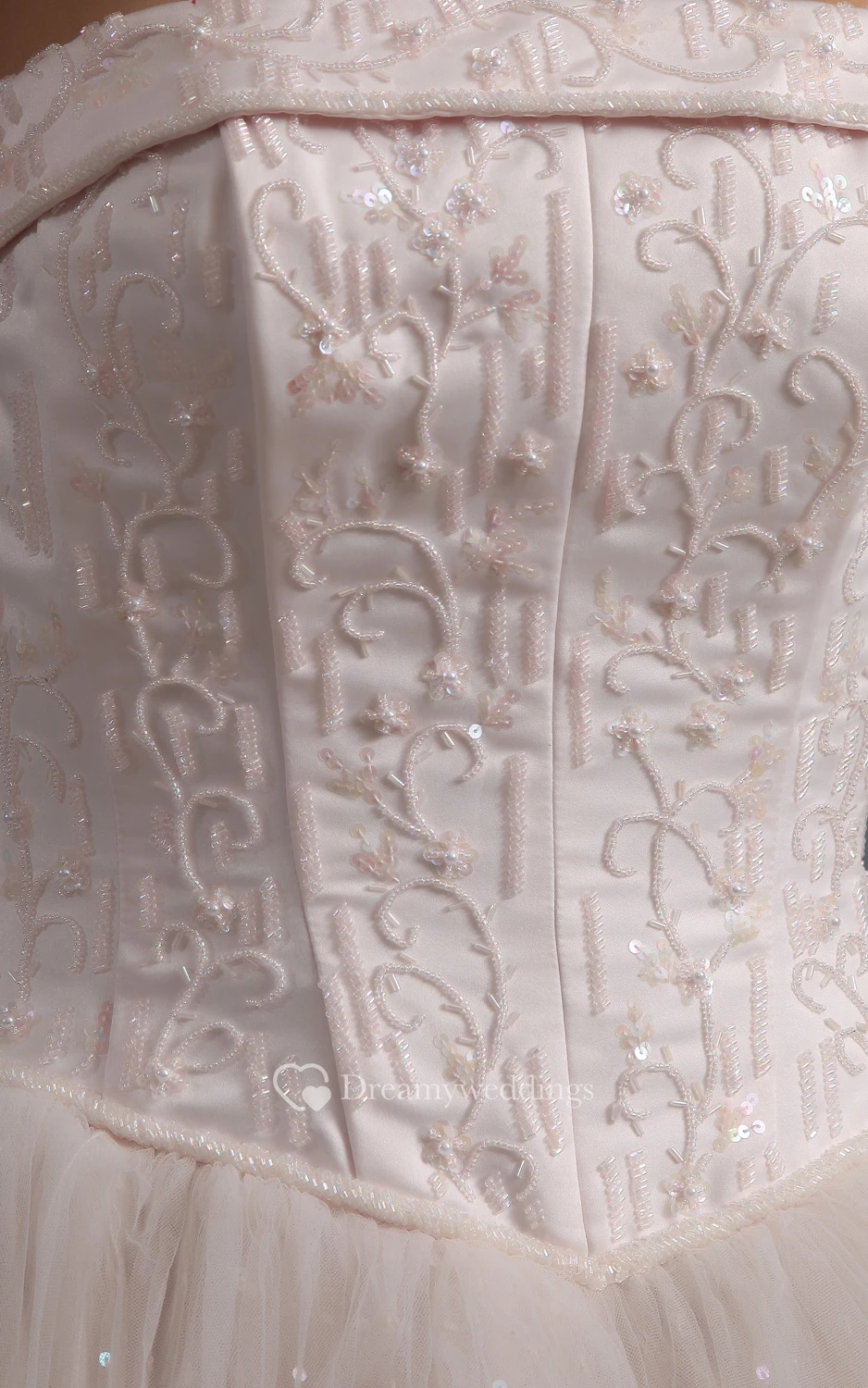 Blushing Pink A-Line Ball Gown With Embroideried Bodice and Tulle Overlay