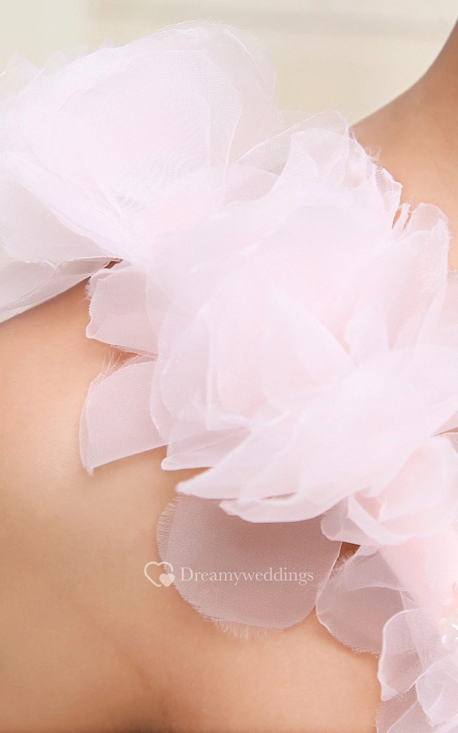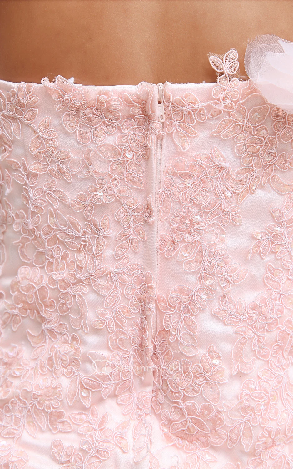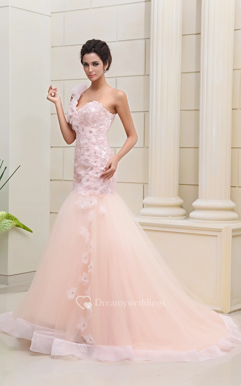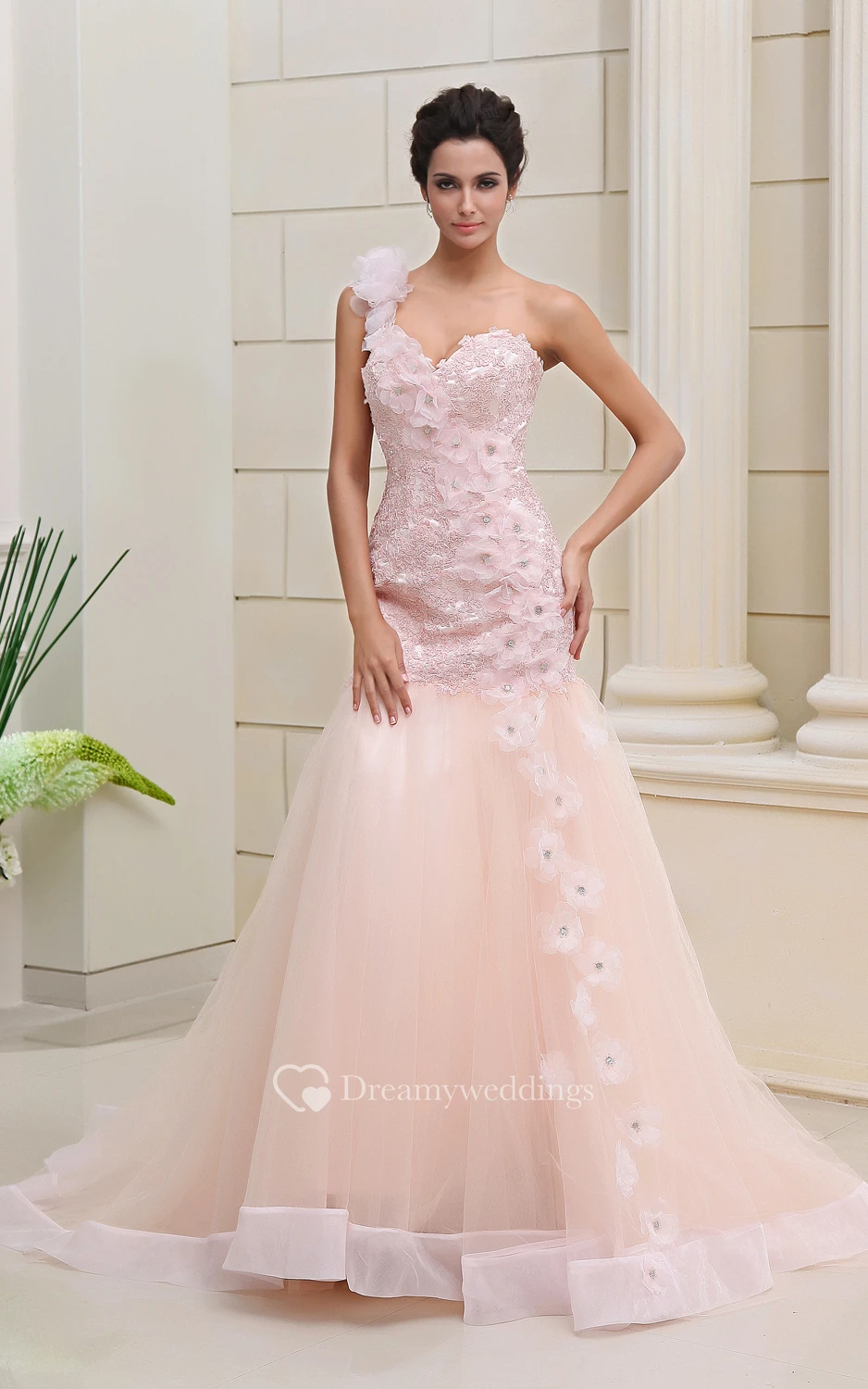 Blushing Pink Mermaid Dress With Lace and Flowers