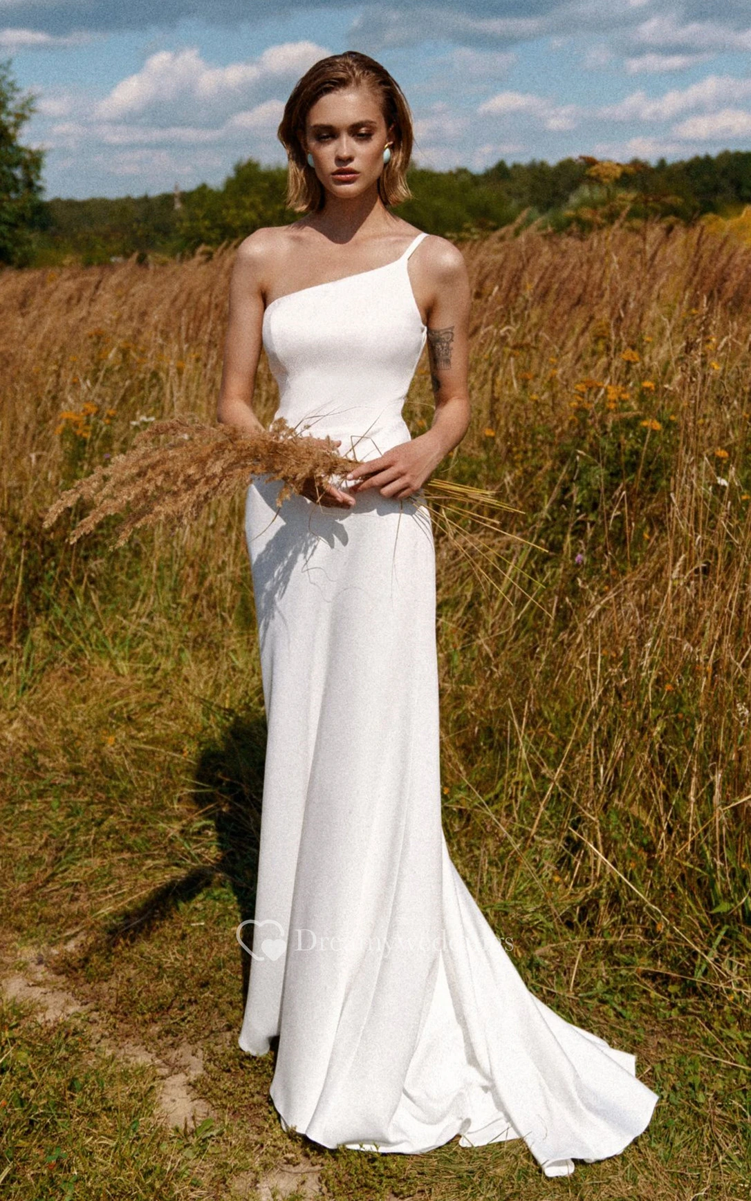 Bohemian 2-in-1 Chiffon and Satin Sweep Train Wedding Dress with Removable Skirt