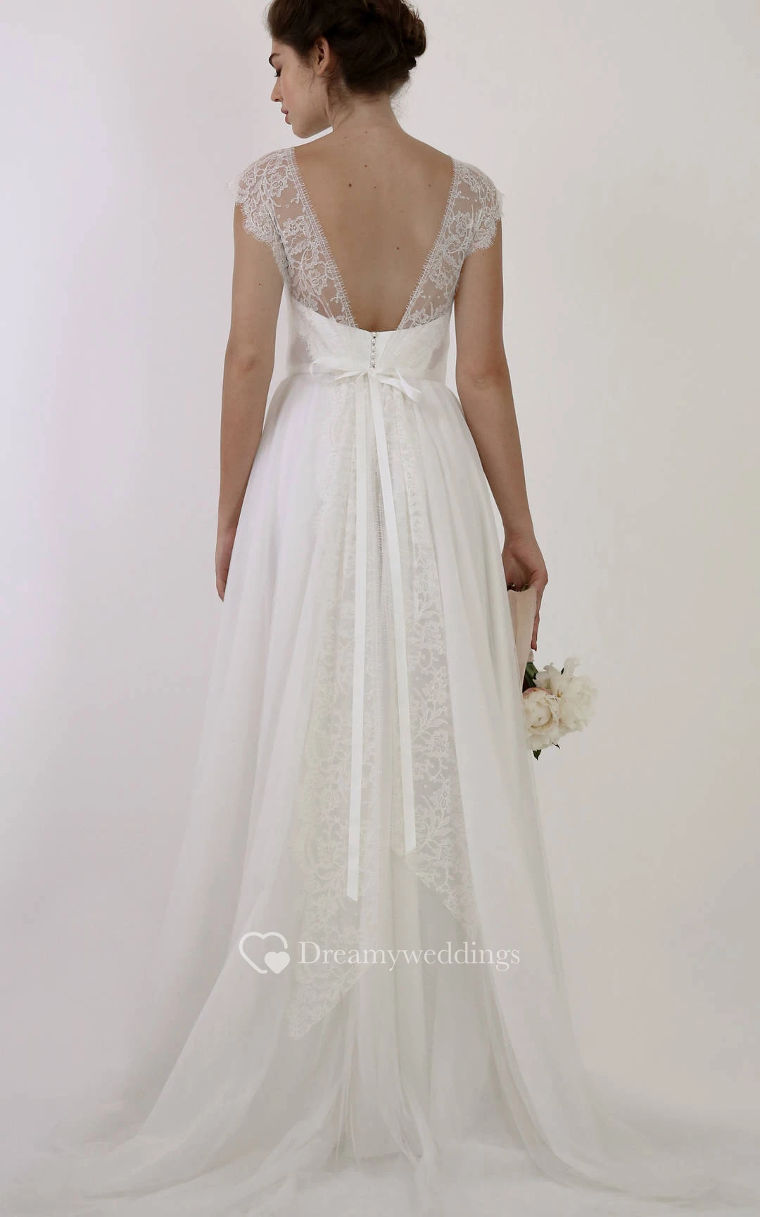 Bohemian Tulle Scoop Sleeveless Bow Wedding Dress With Deep-V Back