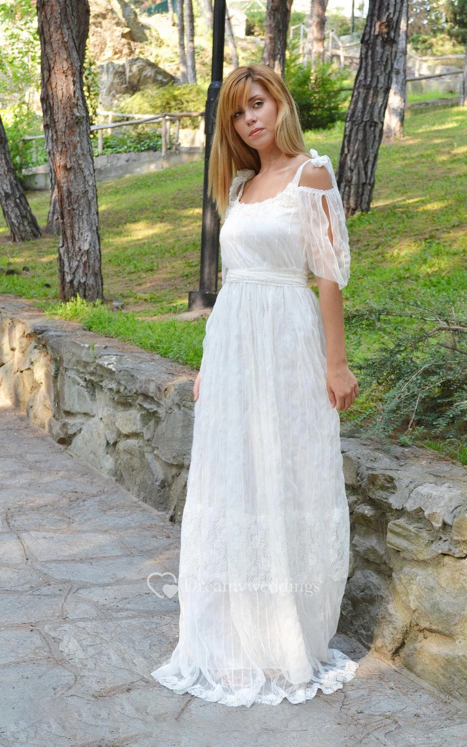 Boho Empire Backless Long Organza Wedding Dress With Sash And Scoop Neck