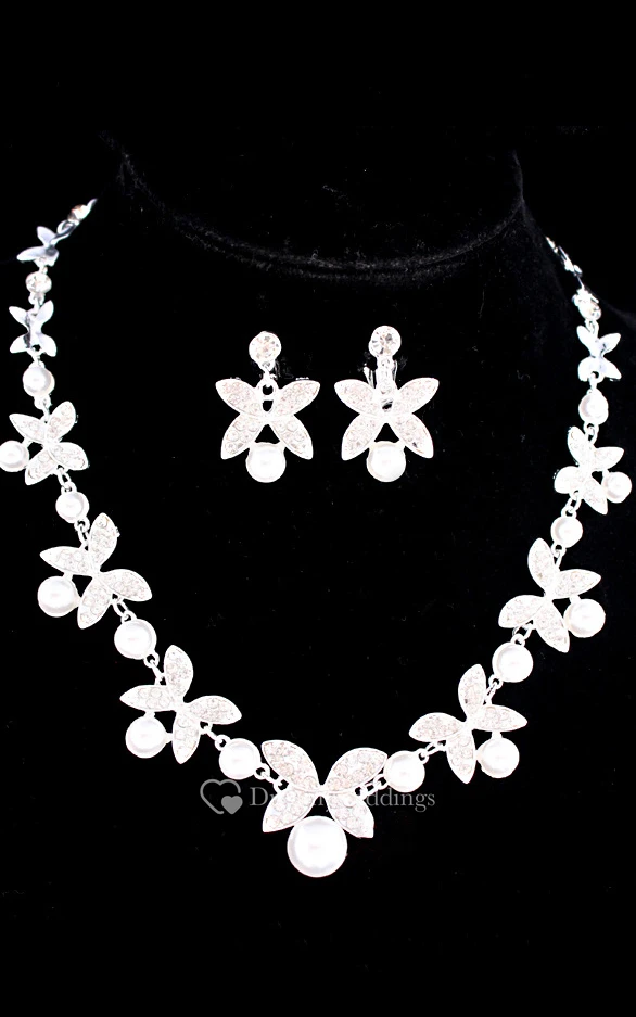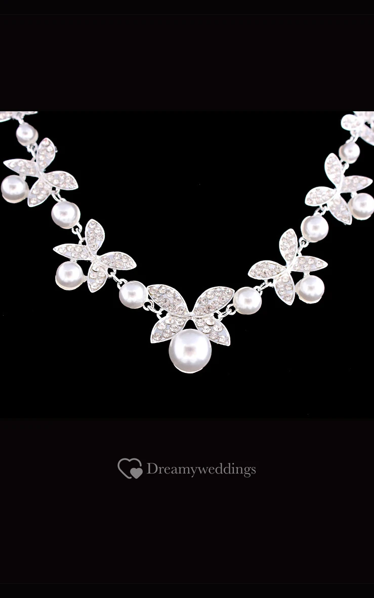 Bridal Pearls Sequins Two-piece Set Earrings And Necklace