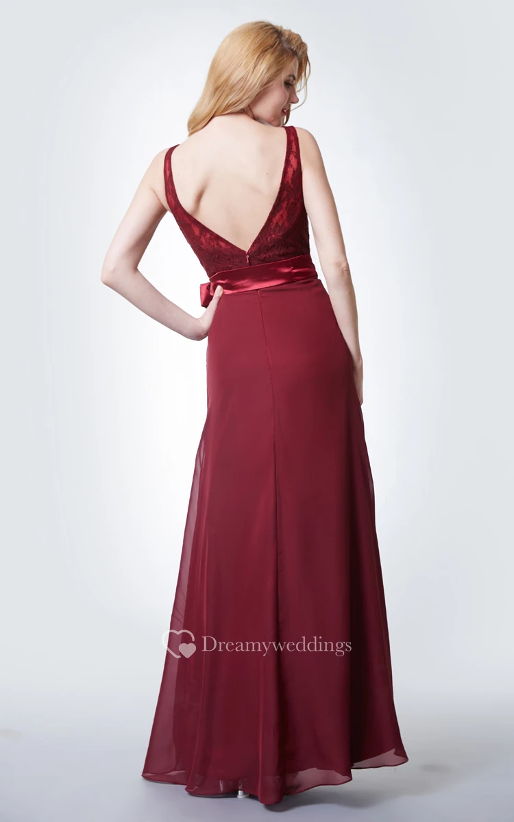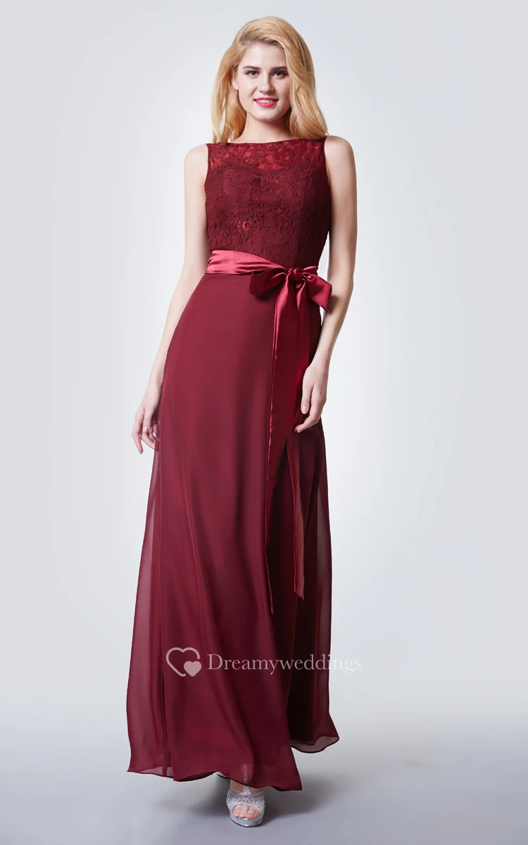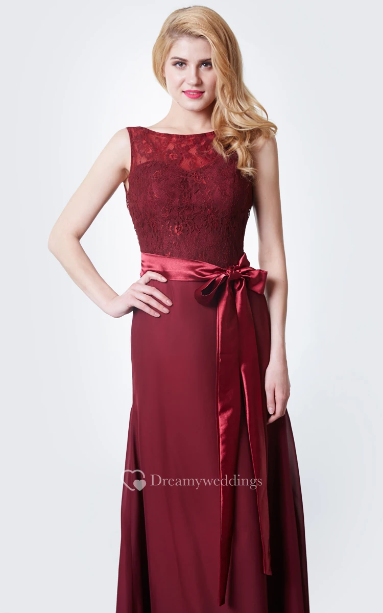 Brilliant Bateau Neck Form-fitted Chiffon Gown With Satin Sash