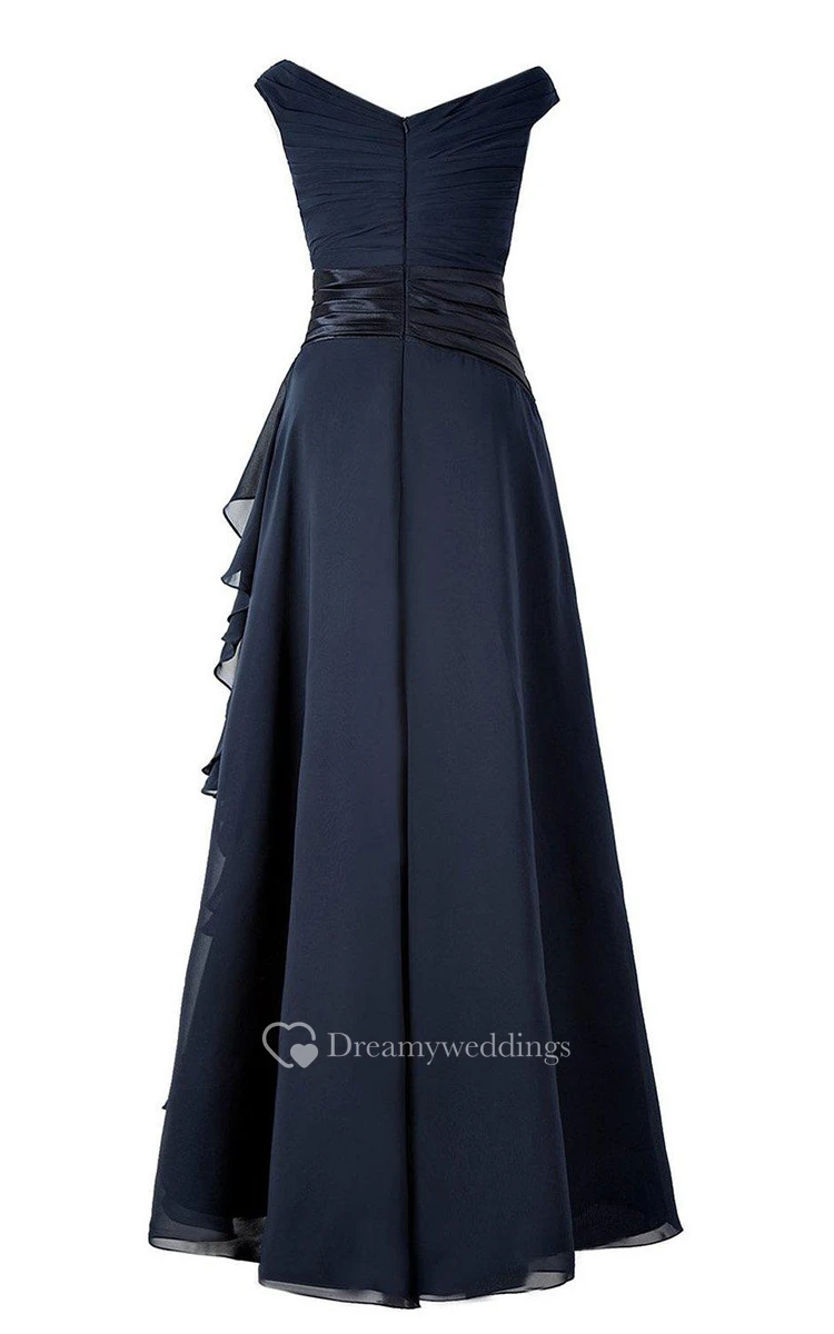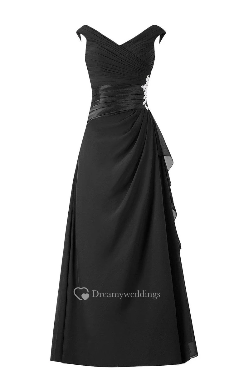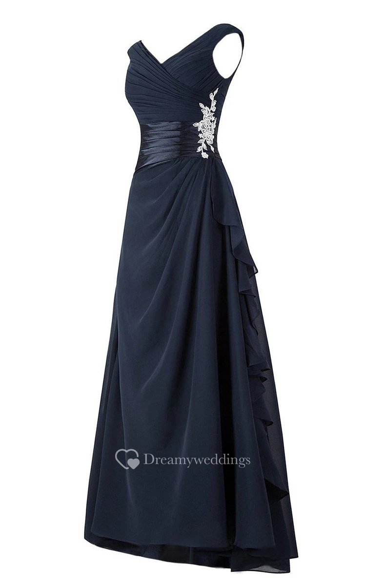 Brilliant V-neck Chiffon Long Dress With Asymmetric Drapping