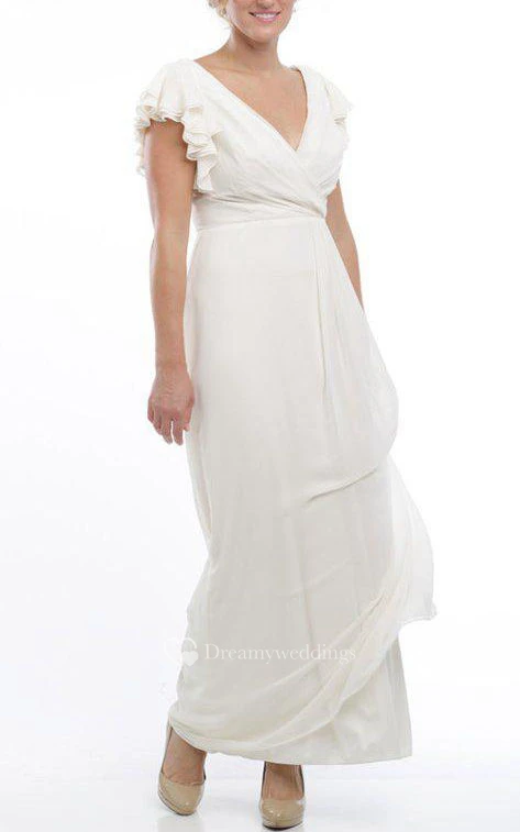 Butterfly Sleeves V-neck Chiffon Long Dress