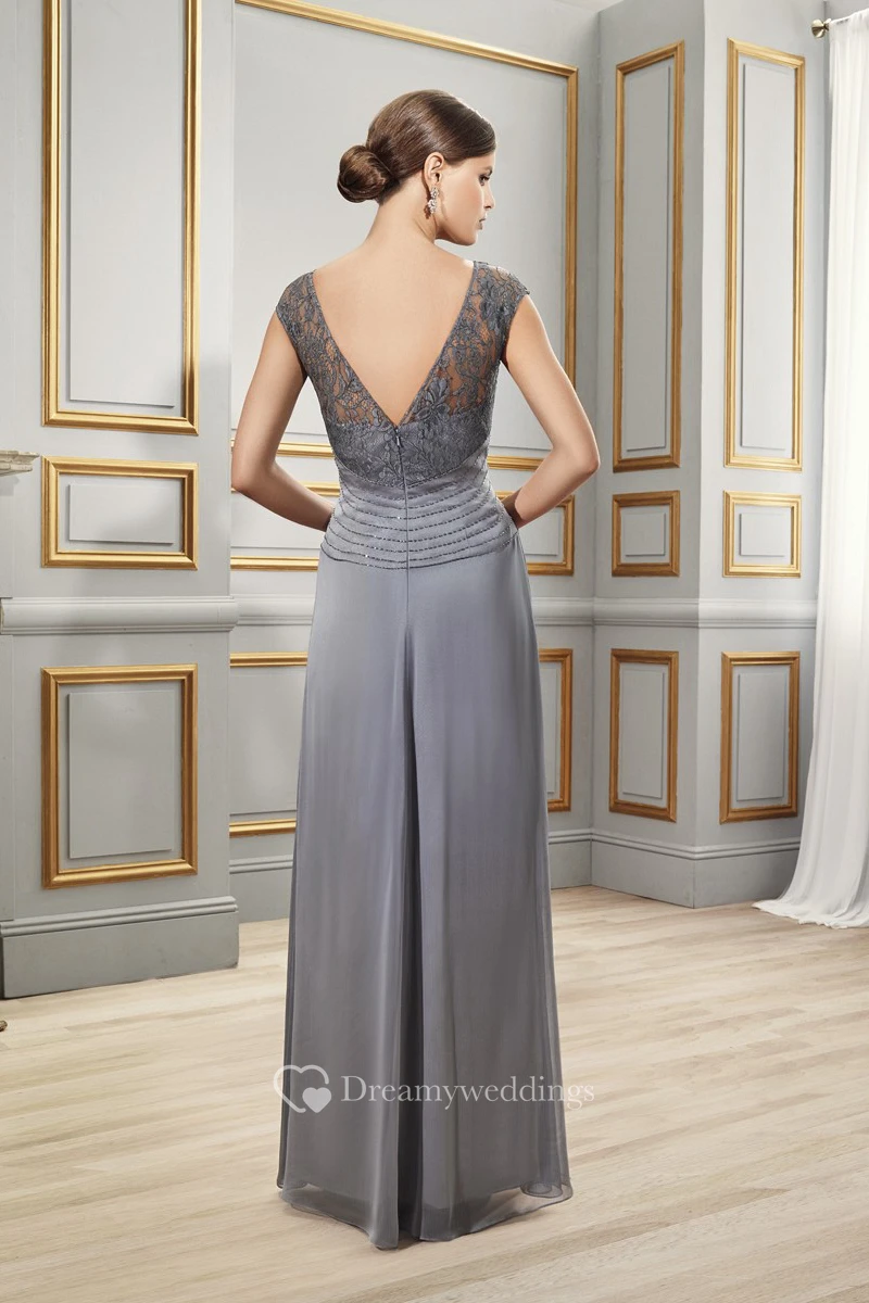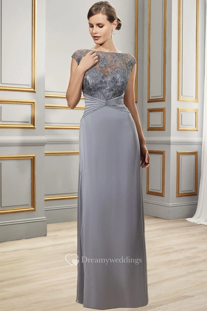 Cap Sleeve Appliqued Bateau Neck Chiffon Formal Dress