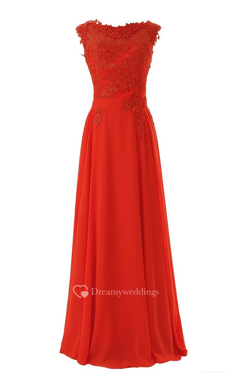 Cap-sleeve Bateau Neck A-line Dress With Lace Appliques