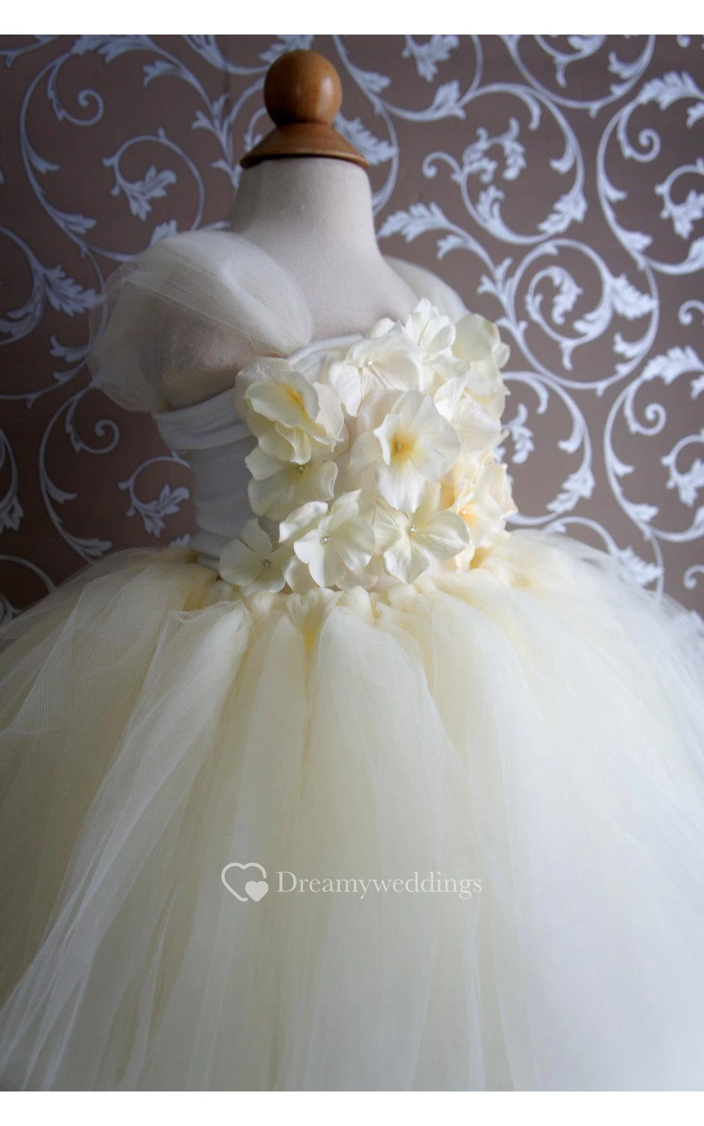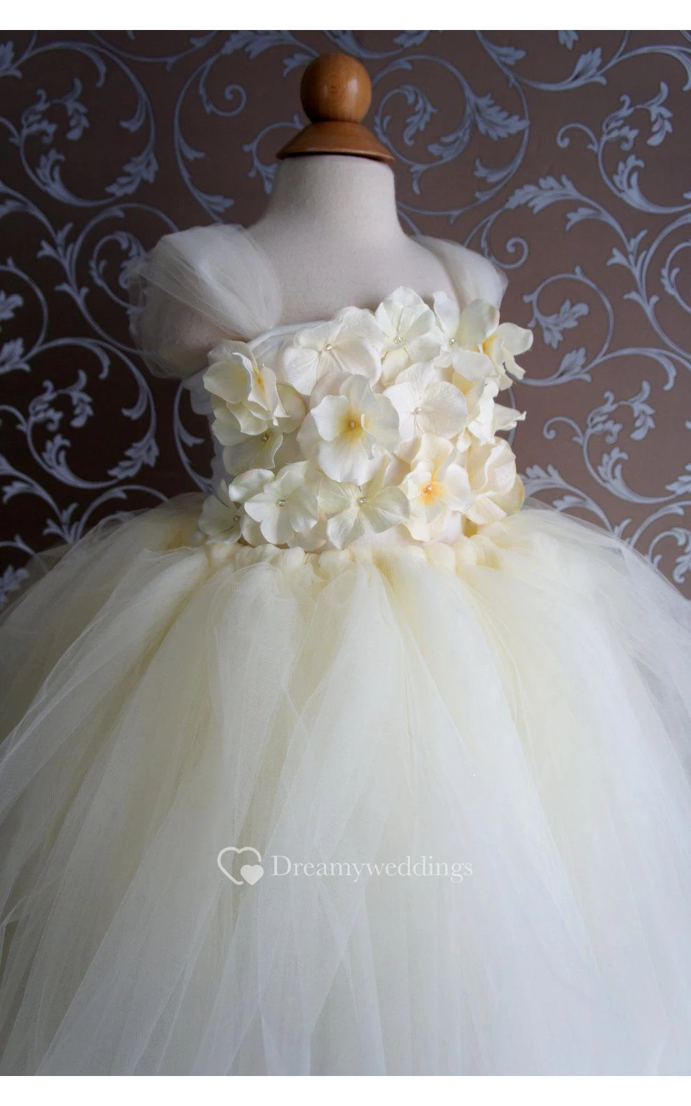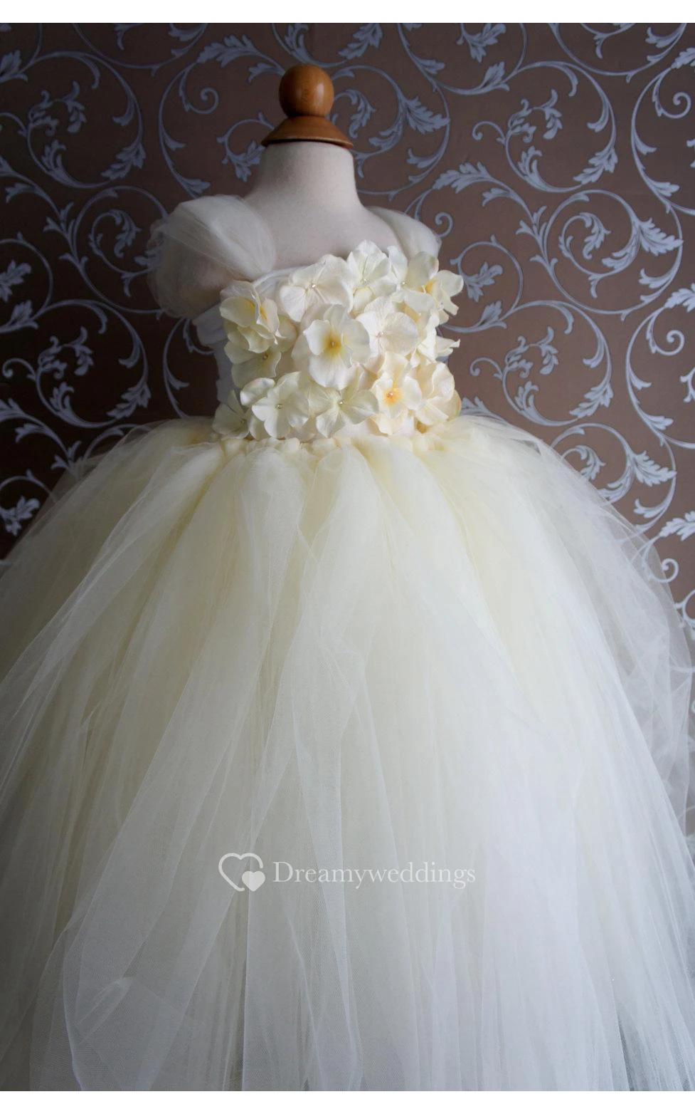 Cap Sleeve Floral Top Tiered Tulle Ball Gown