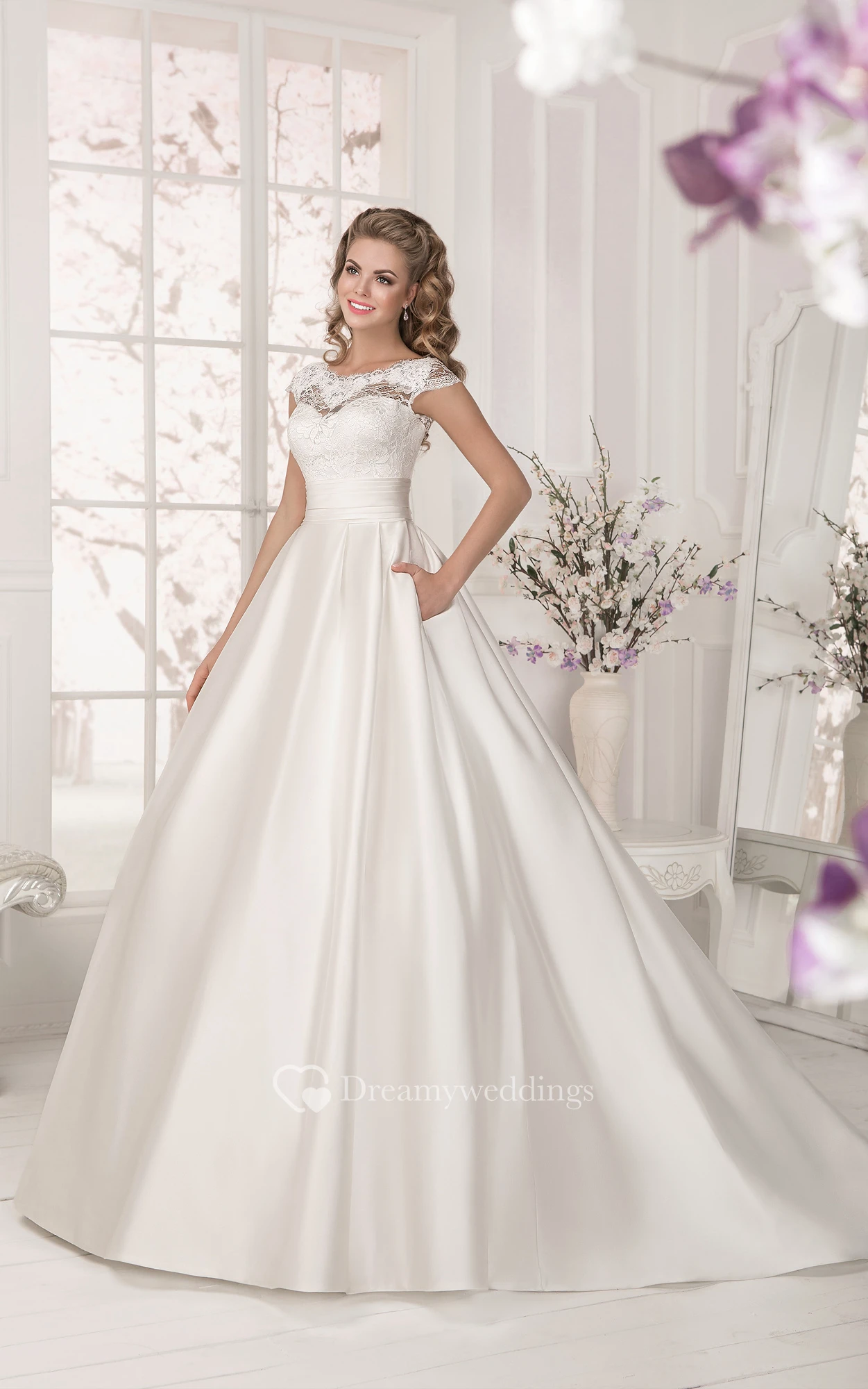 Cap Sleeve Lace Top Long Lace-up Back Satin Dress