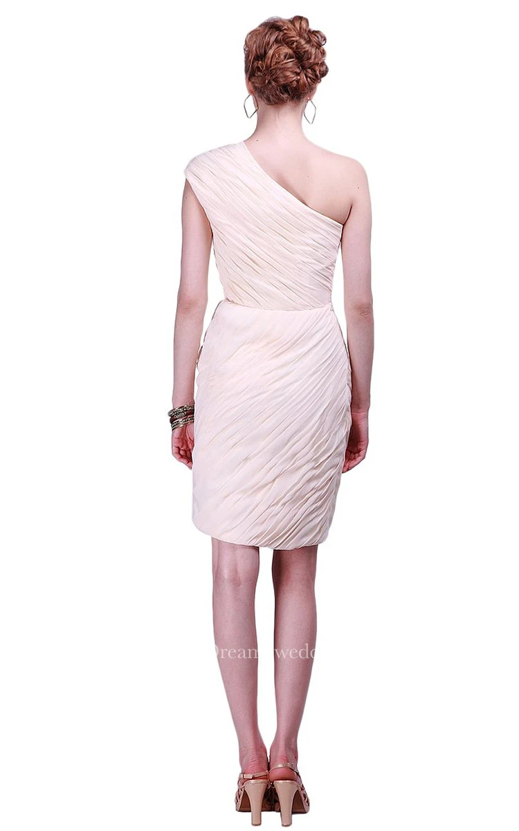Cap-sleeve One-shoulder Ruched Short Sheath Gown