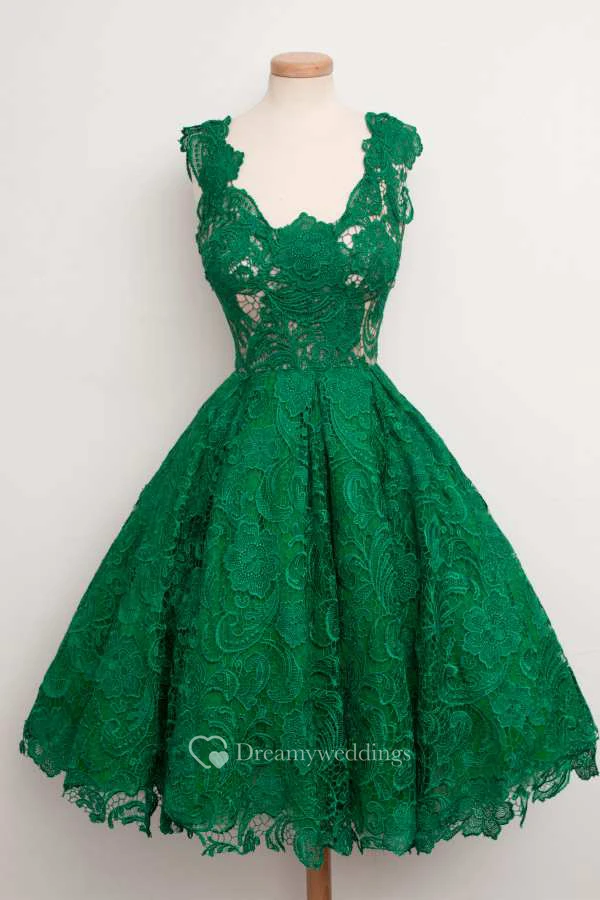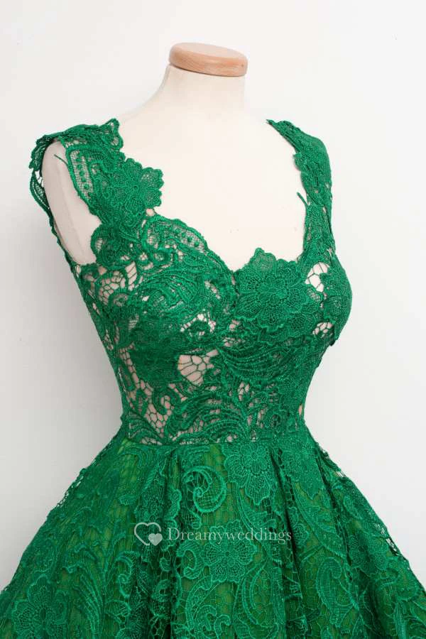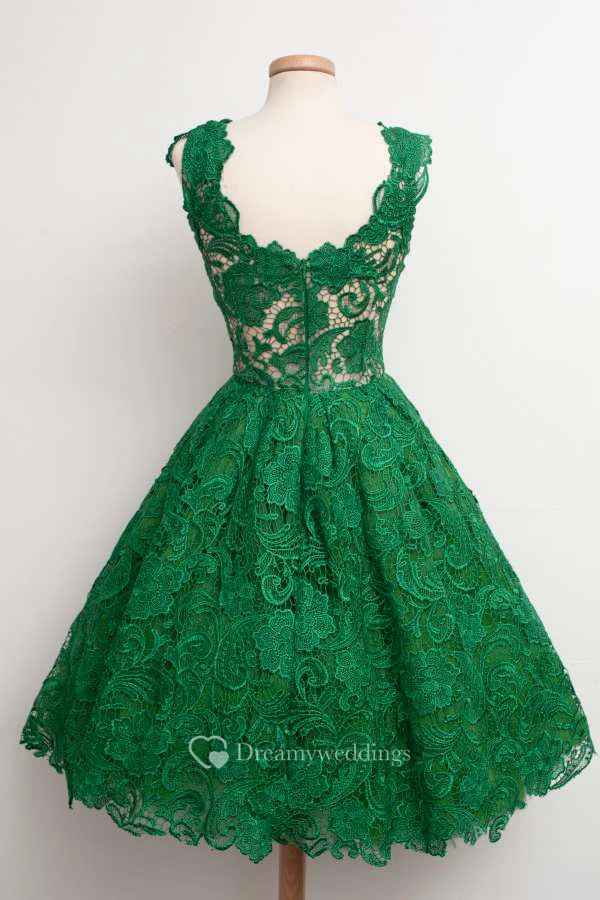 Cap Sleeve Scoop Neck A-line Knee Length Lace Dress