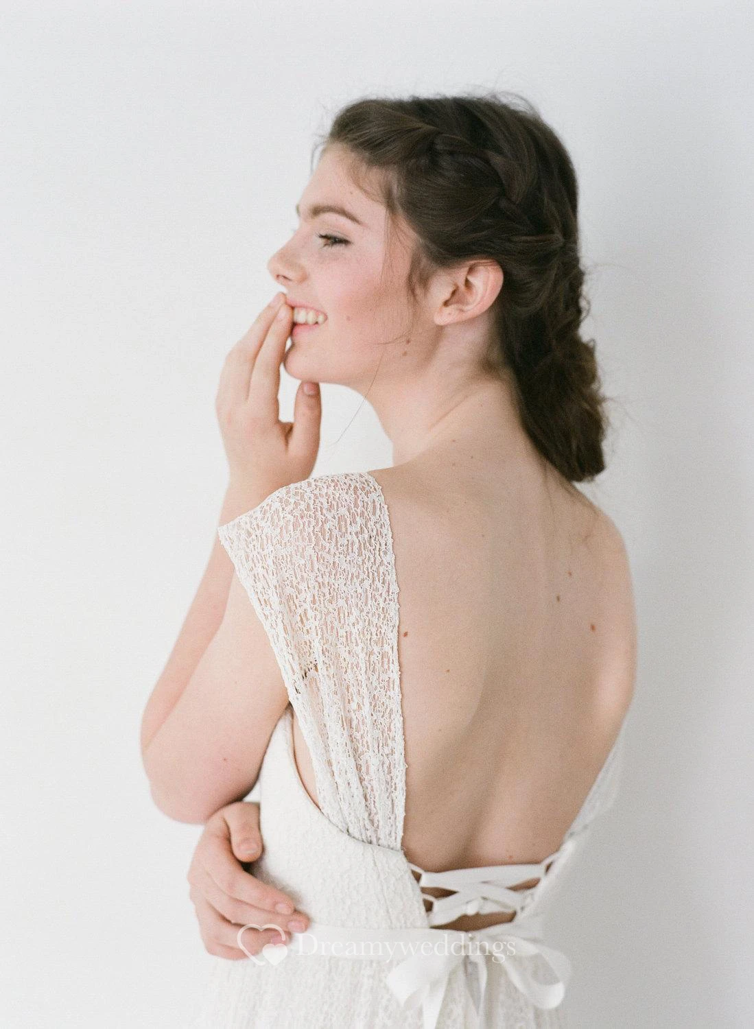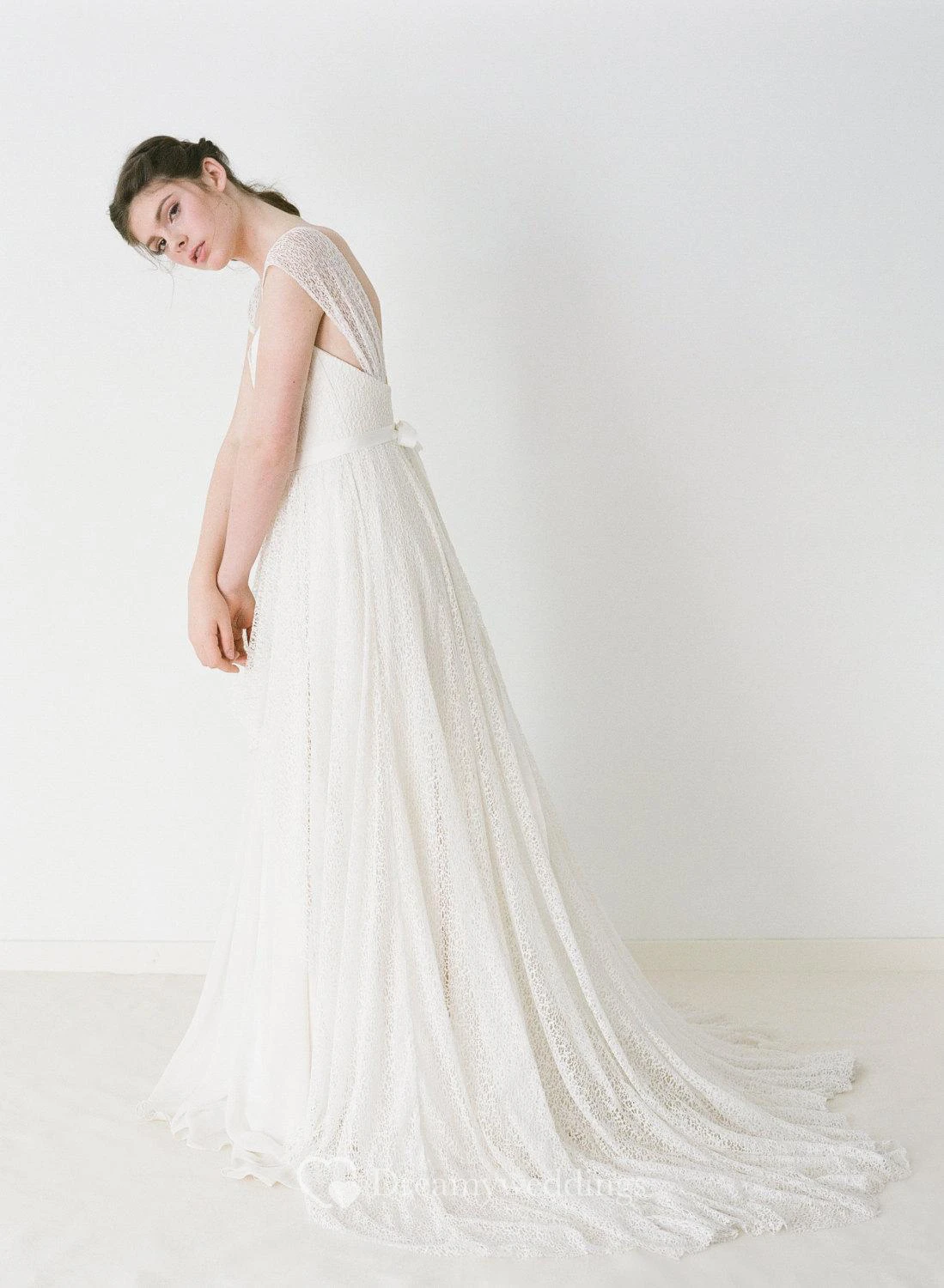 Cap Sleeve V-Neck A-Line Lace Dress With Lace-Up Back